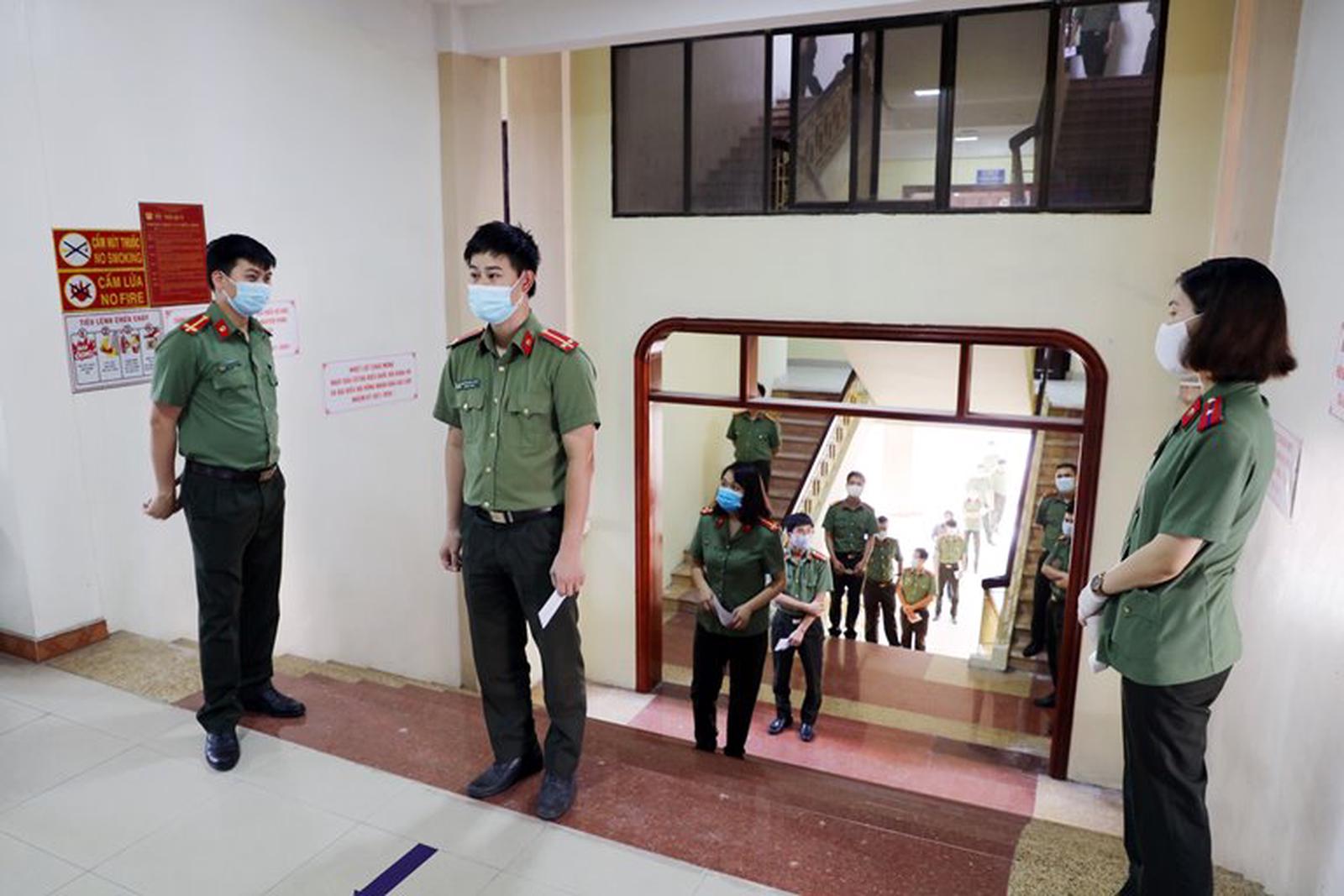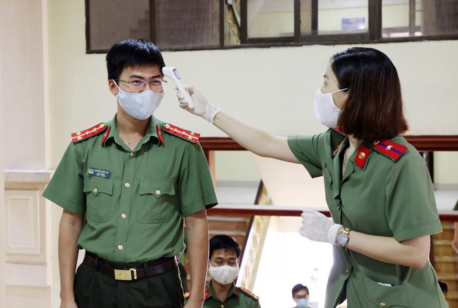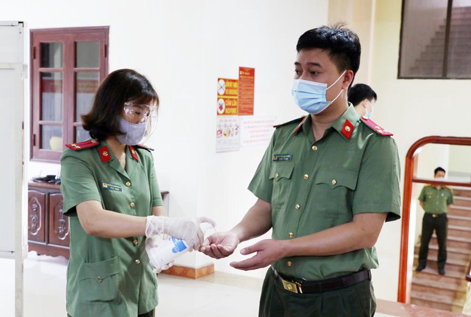Trước diễn biến phức tạp của tình hình dịch Covid-19, Tổ bầu cử Công an tỉnh đã thực hiện biện pháp phòng dịch như: Đo thân nhiệt, sát khuẩn, giữ khoảng cách 2m, thông báo giờ thời gian cụ thể đối với từng phòng để tránh tụ tập đông người…