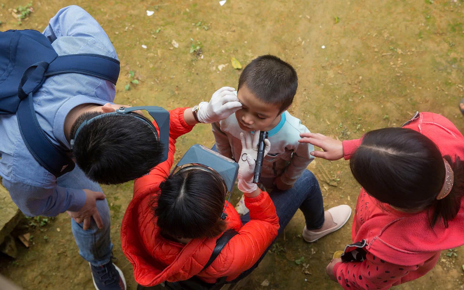 Nhân viên y tế đến các khu dân cư khám và chưa bệnh mắt hột cho người dân. Ảnh WTO