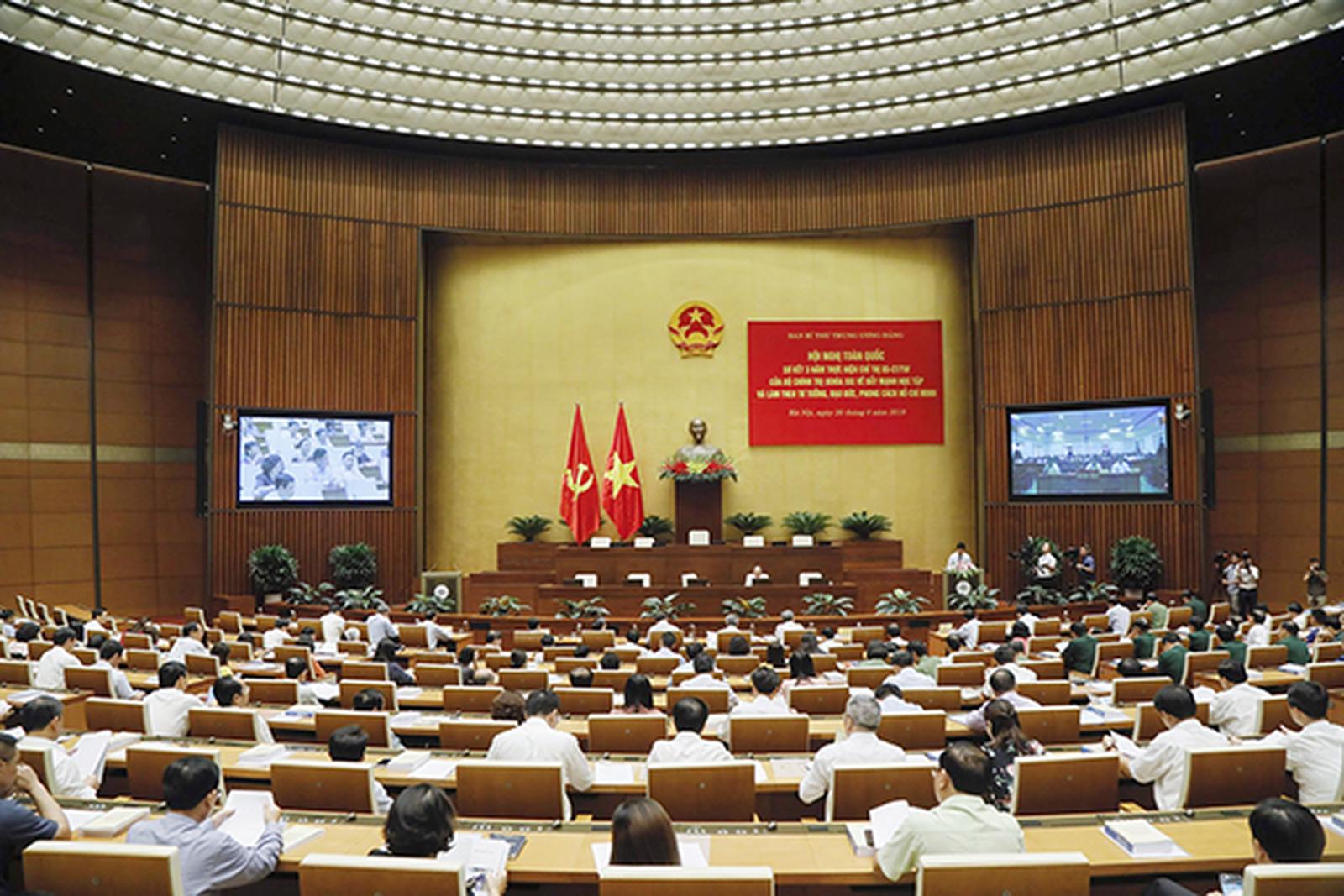 Thạm dự tại điểm cầu ở Trung ương có Thường trực Ban Bí thư Trần Quốc Vượng, Trưởng Ban Tuyên giáo Trung ương Võ Văn Thưởng và đại diện các cơ quan, bộ, ngành và chính quyền địa phương.