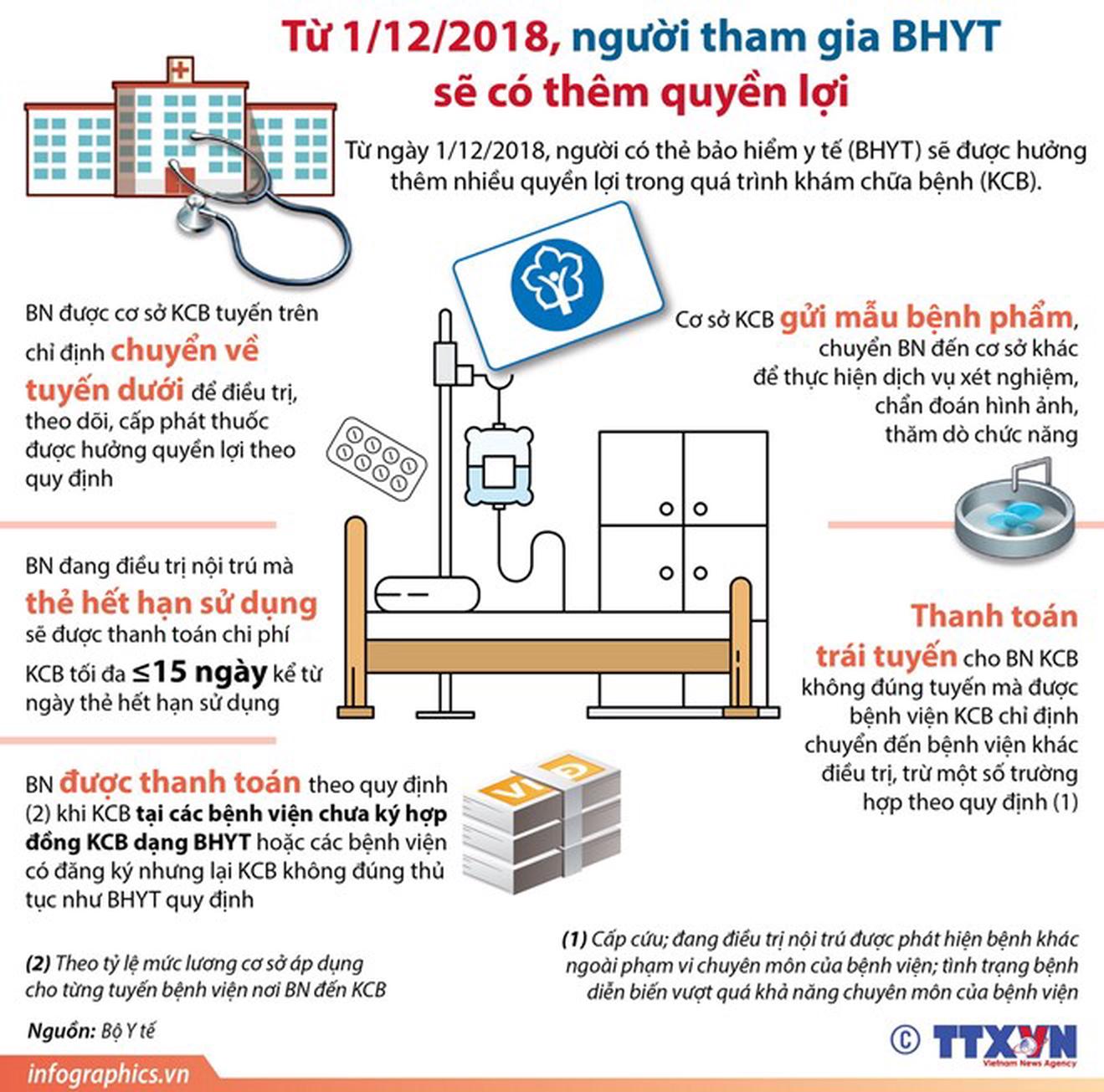 Từ ngày 1/12/2018, người có thẻ bảo hiểm y tế sẽ được hưởng thêm nhiều quyền lợi trong quá trình khám chữa bệnh.