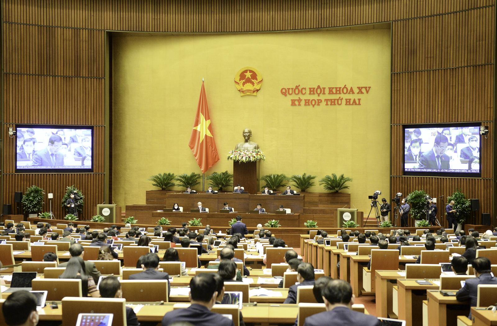 Quốc hội thảo luận tập trung ở hội trường về tình hình phát triển kinh tế - xã hội, ngân sách Nhà nước, công tác phòng, chống dịch COVID-19. Ảnh: Đ.X