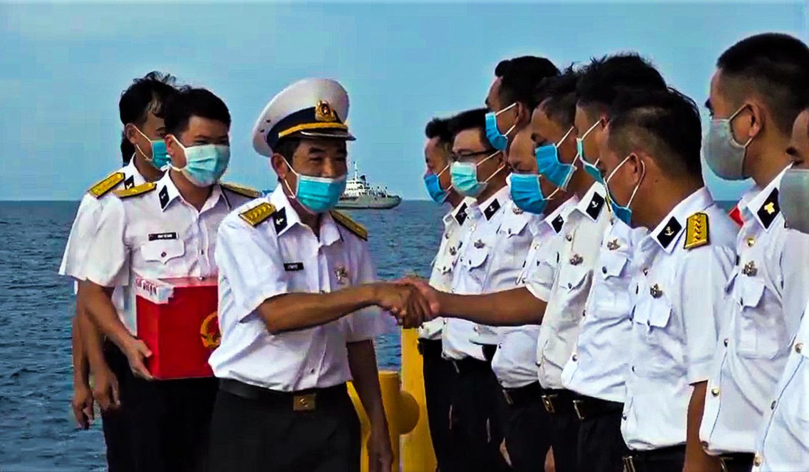 Quang cảnh lễ tiễn hai tàu Trường Sa 04 và Trường Sa 19 đi bầu cử sớm trên thềm lục địa