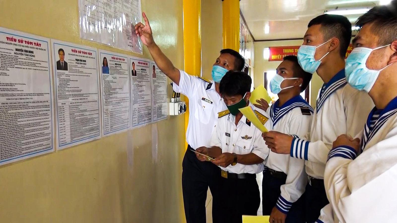 Đại tá Lê Đình Việt, Phó Chủ nhiệm Chính trị Uỷ ban Kiểm tra Đảng uỷ Vùng 2 Hải quân, Tổ trưởng Tổ Bầu cử sớm trên biển cho biết, có gần 1.000 cử tri gồm cán bộ chiến sĩ 15 Nhà giàn DK1, lực lượng tàu trực của hải quân, Kiểm ngư, Cảnh sát biển và bà con ngư dân (cử tri vãng lai) đang làm nhiệm vụ, lao động, đánh bắt hải sản trên các vùng biển thuộc thềm lục địa phía Nam đã hoàn tất nhiệm vụ bầu cử. Hòm phiếu được bảo vệ nghiêm ngặt, an toàn theo chế độ mật.