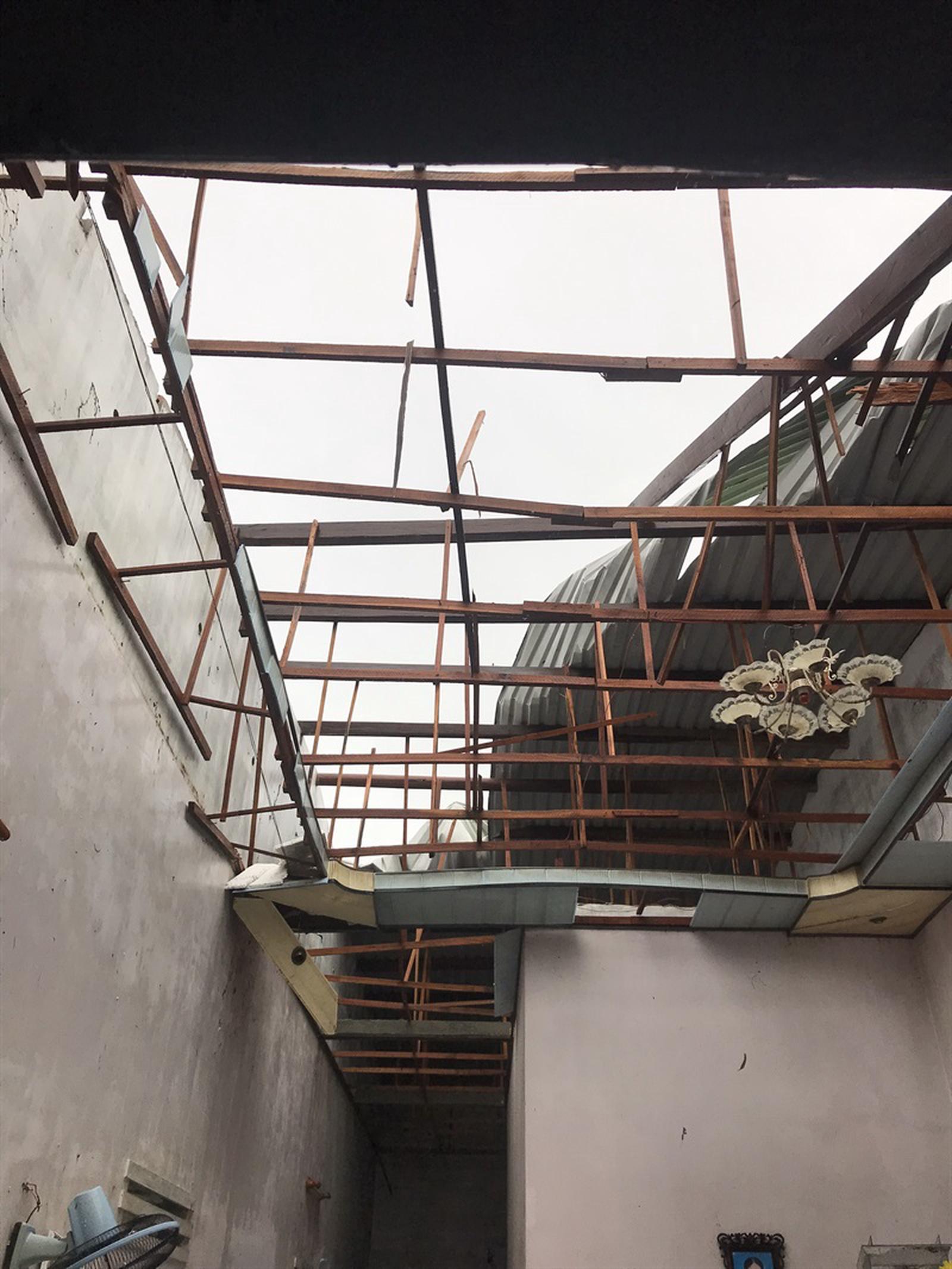 Nhiều nhà dân ở Quảng Nam bị tốc mái do bão số 4. Ảnh: P.T