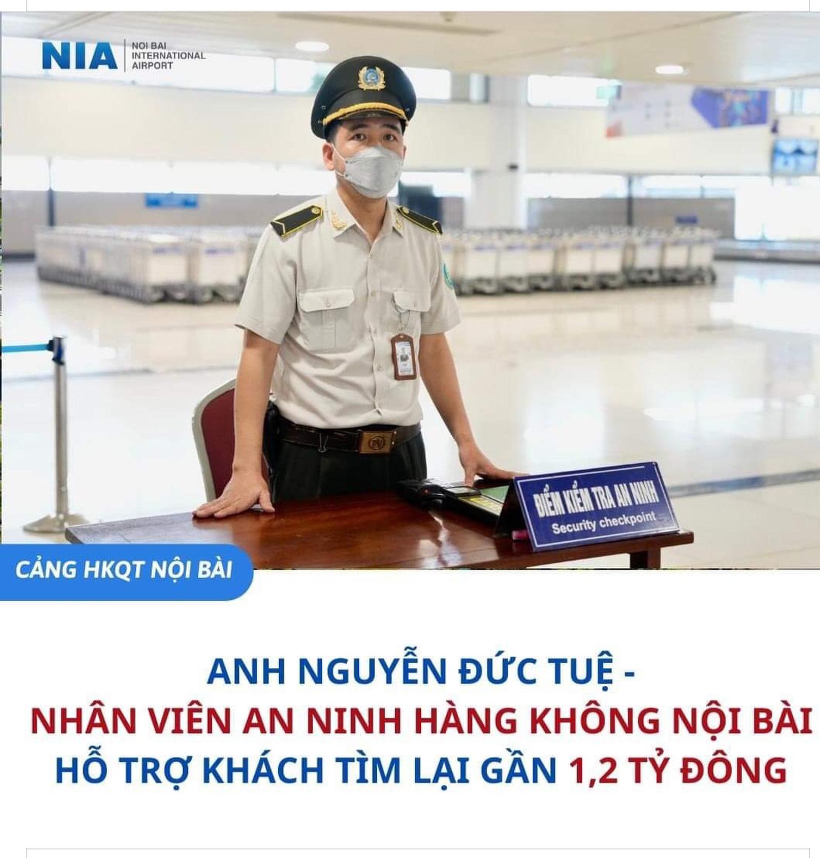 Đoàn viên thanh niên thuộc Cảng Hàng không quốc tế Nội Bài hỗ trợ tìm lại số tiền lớn. Ảnh: ACV