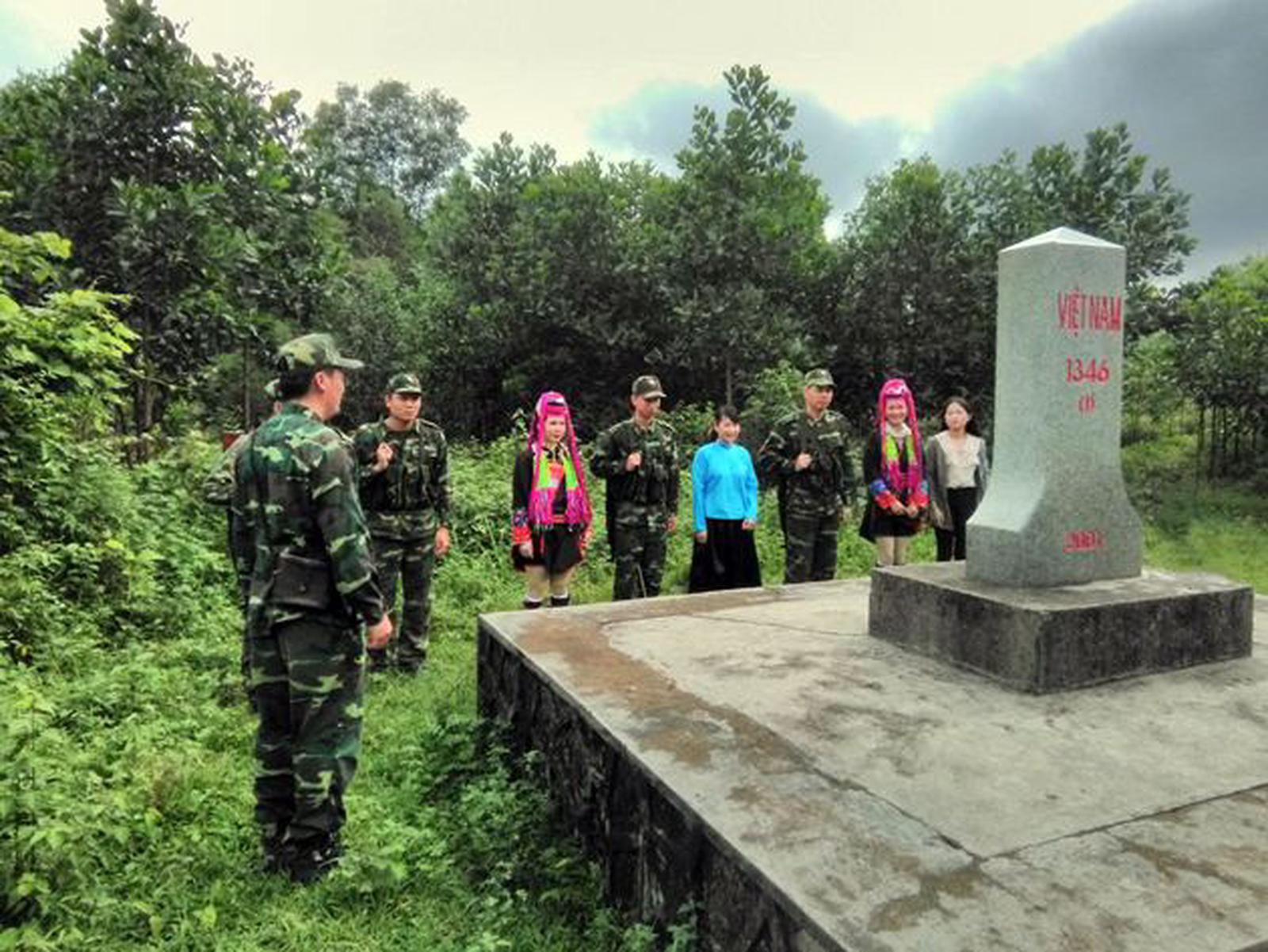 CBCS Đồn Biên phòng Pò Hèn phối hợp với "Tổ phụ nữ giữ gìn đường biên, cột mốc" xã Hải Sơn (TP Móng Cái) tuần tra biên giới, tháng 5/2020