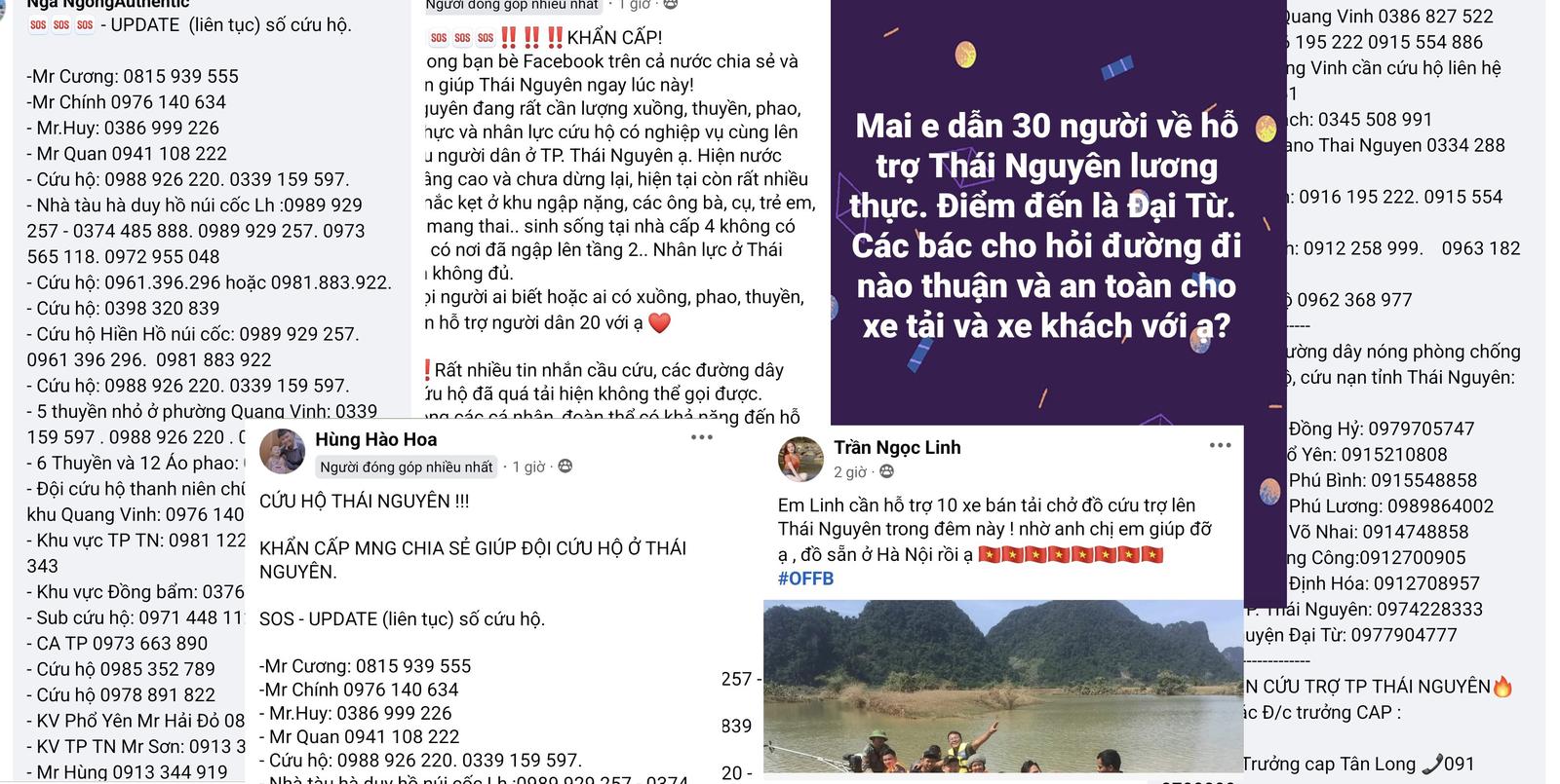 Nhiều người đã tập hợp các số điện thoại cứu hộ để đăng tải và cập nhật liên tục, giúp cho những người bị cô lập nắm được thông tin, chủ động liên hệ với các đội cứu hộ để nhận được sự giúp đỡ kịp thời.