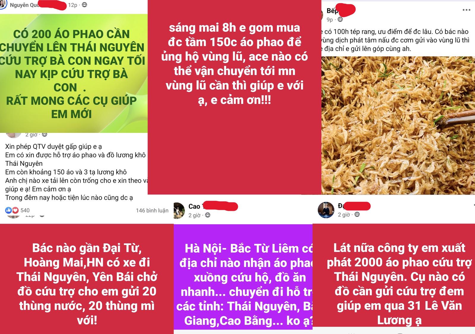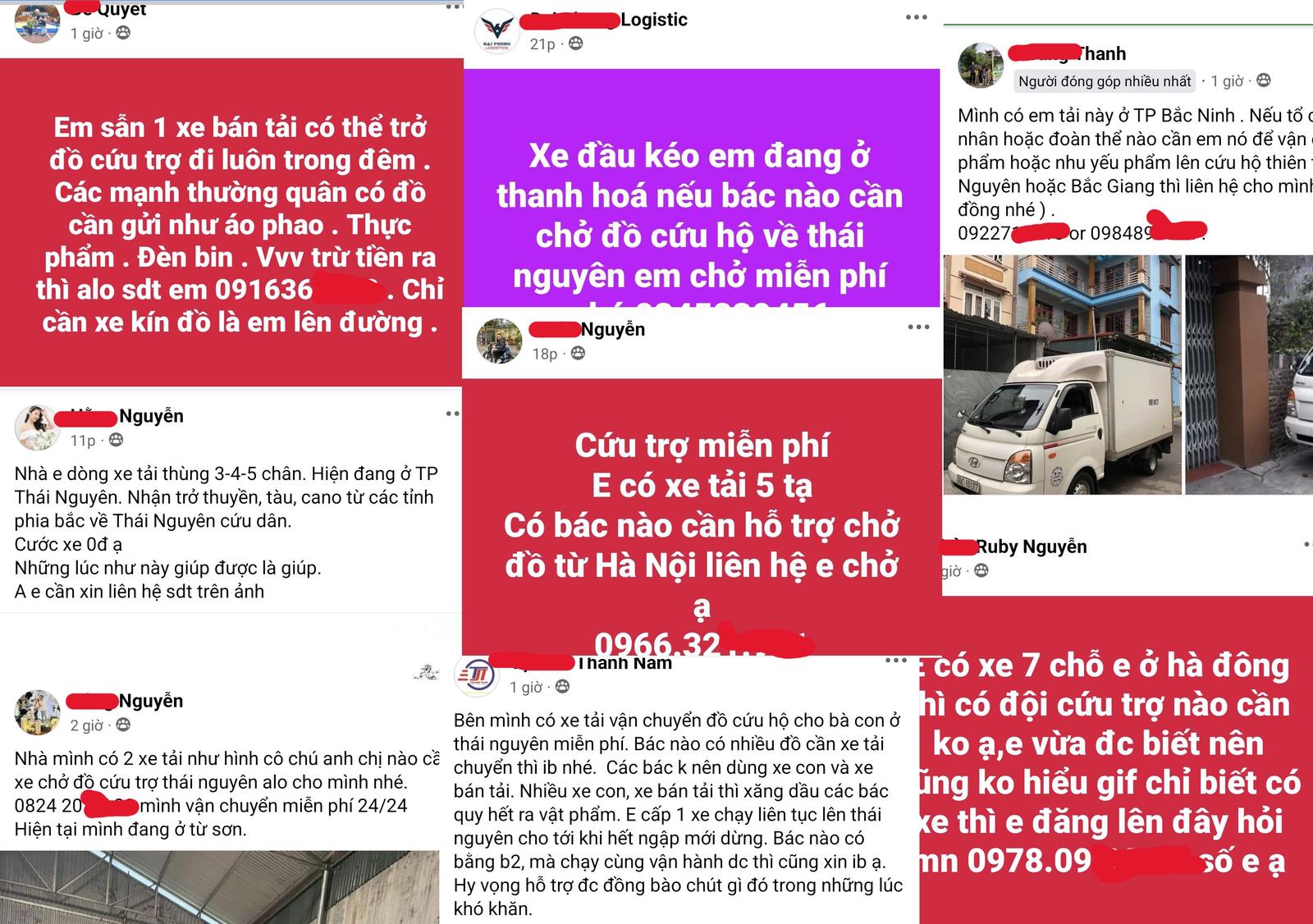Rất nhiều người không có điều kiện đến tận nơi cứu trợ, nhưng mua gom được các vật phẩm cứu trợ cũng đăng tải kêu gọi để tìm người vận chuyển giúp.