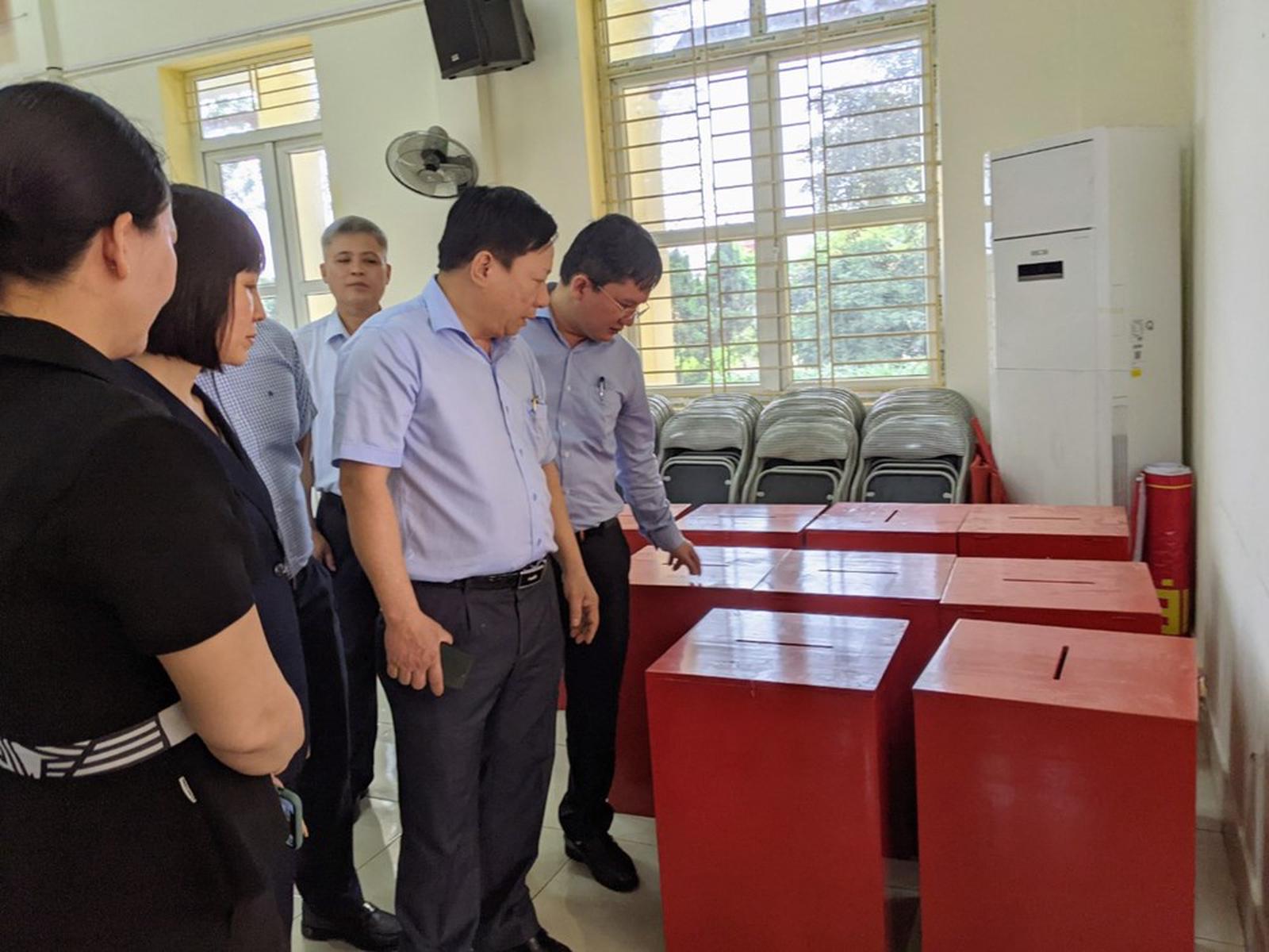 Phó Chủ tịch UBND thành phố Nguyễn Đức Thọ kiểm tra công tác chuẩn bị bầu cử tại xã An Hồng, huyện An Dương. Ảnh: KT