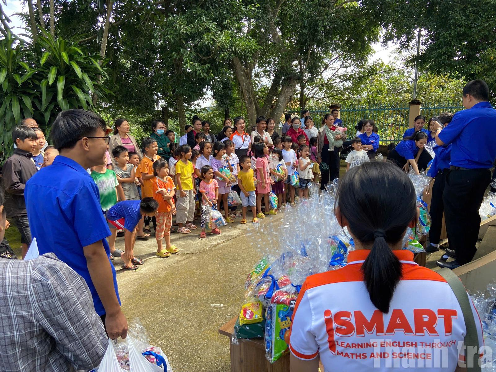 Báo Thanh tra và Công ty cổ phần Giáo dục ISMART trao 200 suất quà trung thu cho các em thiếu nhi bon Bróih, xã Krông Nô (tỉnh Lâm Đồng). Ảnh: Phan Tiến
