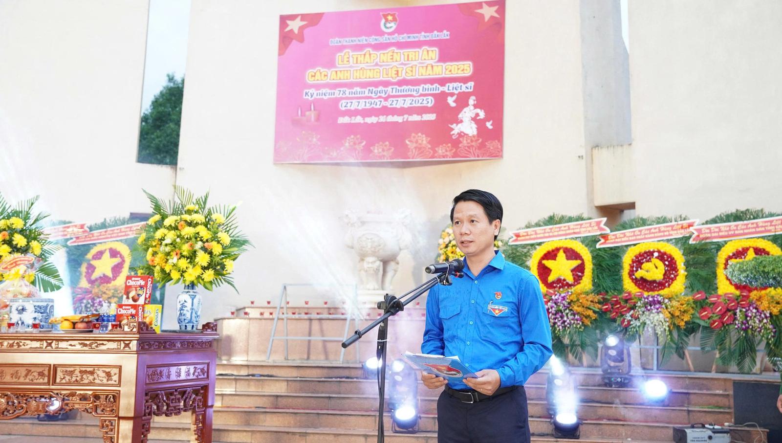 Phát biểu tại buổi lễ, đồng chí Lương Minh Tùng, Phó Chủ tịch Ủy ban MTTQ Việt Nam tỉnh, Bí thư Tỉnh Đoàn Đắk Lắk nhấn mạnh: "78 năm trôi qua, Ngày Thương binh - Liệt sĩ 27/7 không chỉ là mốc thời gian của lịch sử, mà là ngày để nhân dân, tuổi trẻ cả nước bày tỏ lòng biết ơn, ghi nhớ về những công lao của những con người đã hóa thân vào đất mẹ để quê hương được xanh trở lại, để non sông liền một dải, để lá cờ đỏ sao vàng tung bay khắp mọi miền đất nước".