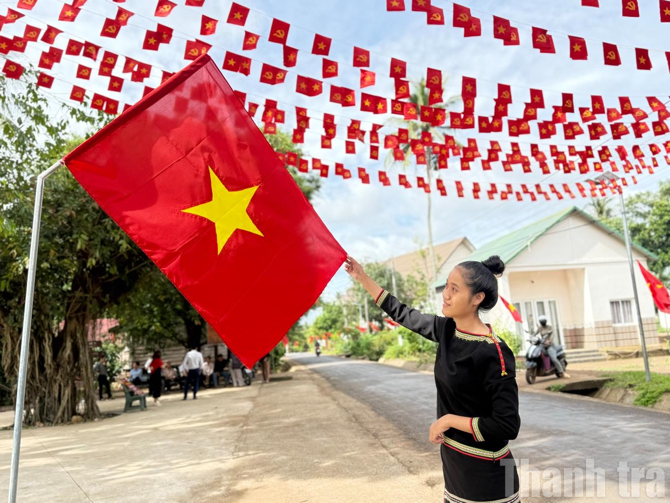 Đoàn viên, thanh niên Đắk Lắk “check-in” cùng cờ đỏ sao vàng, lan tỏa niềm tự hào dân tộc. Ảnh: NG