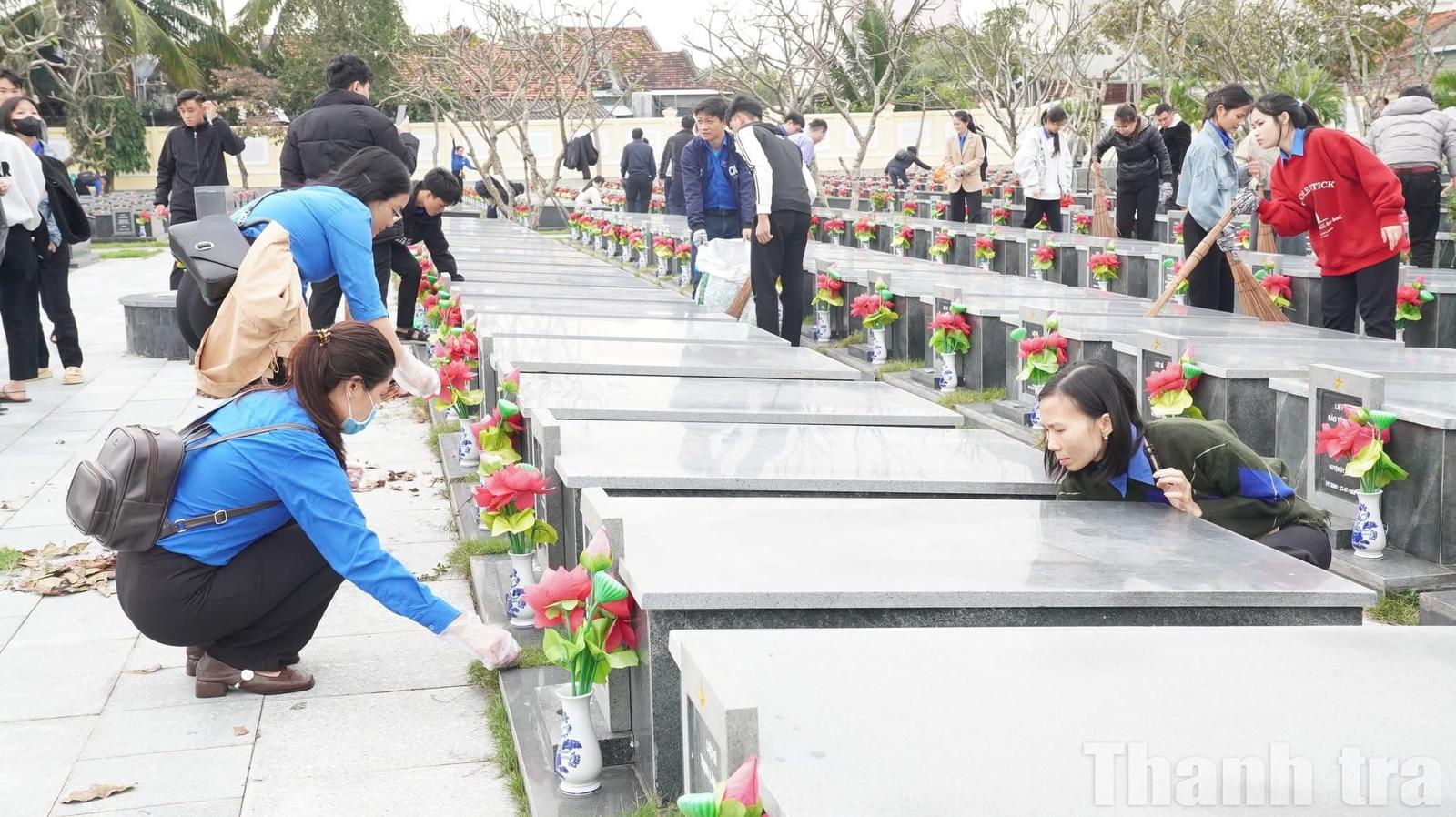 Đoàn viên thanh niên Đắk Lắk tham gia dọn dẹp, dâng hương tại nghĩa trang liệt sĩ. Ảnh: TH