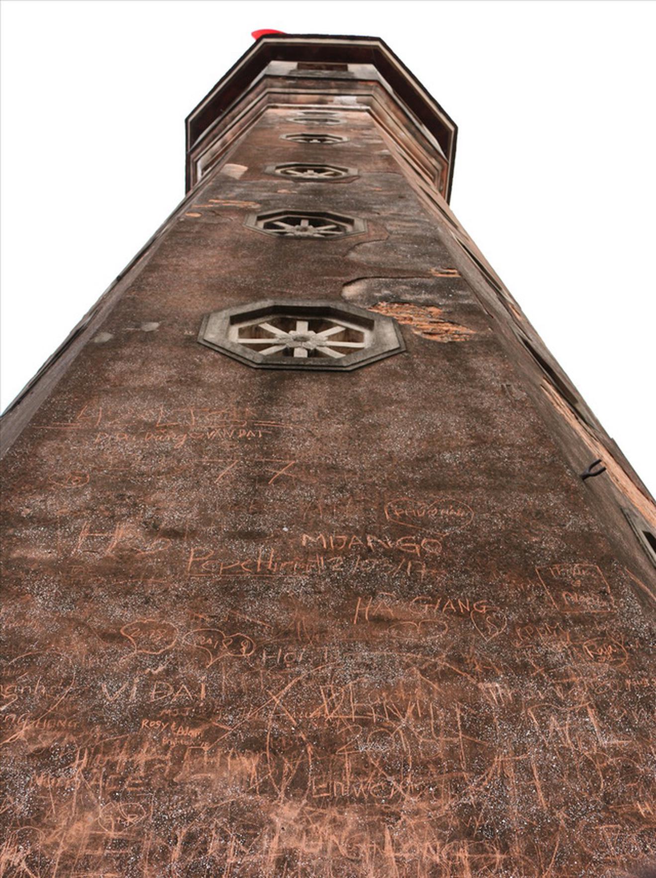 Những vết khắc trên tháp Hòa Phong - Hà Nội khiến những ai yêu mến Hà Nội không khỏi đau lòng. Ảnh: Tùng Nguyễn.