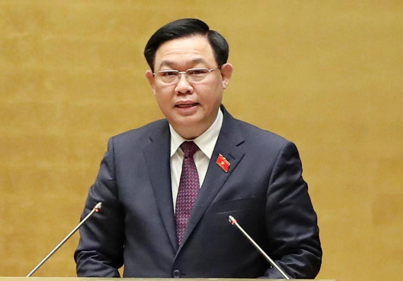 Chủ tịch Quốc hội Vương Đình Huệ phát biểu bế mạc kỳ họp bất thường lần thứ nhất. Ảnh: Đ.X