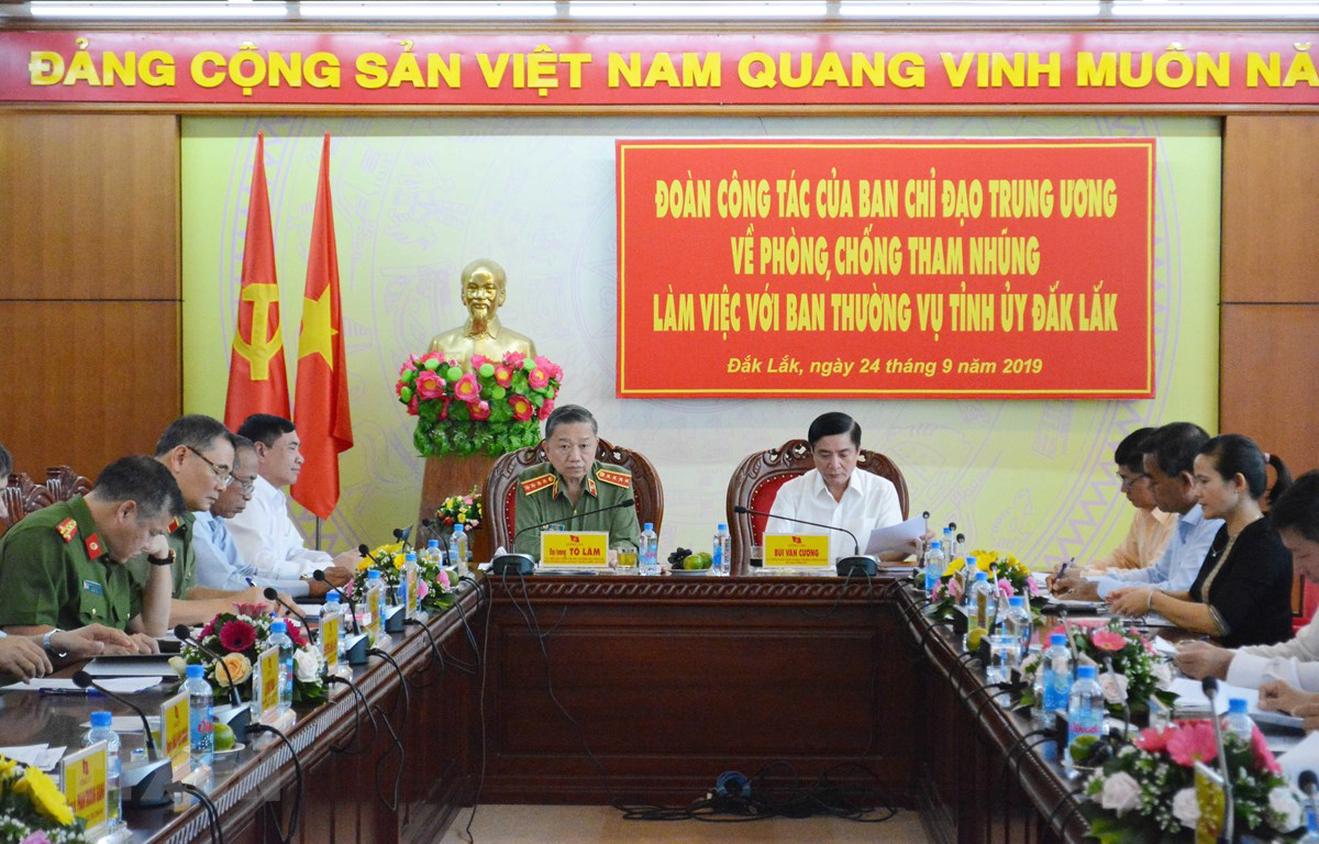 Đoàn công tác của Ban Chỉ đạo Trung ương về phòng, chống tham nhũng làm việc tại Đắk Lắk. (Ảnh: Tuấn Anh/TTXVN)