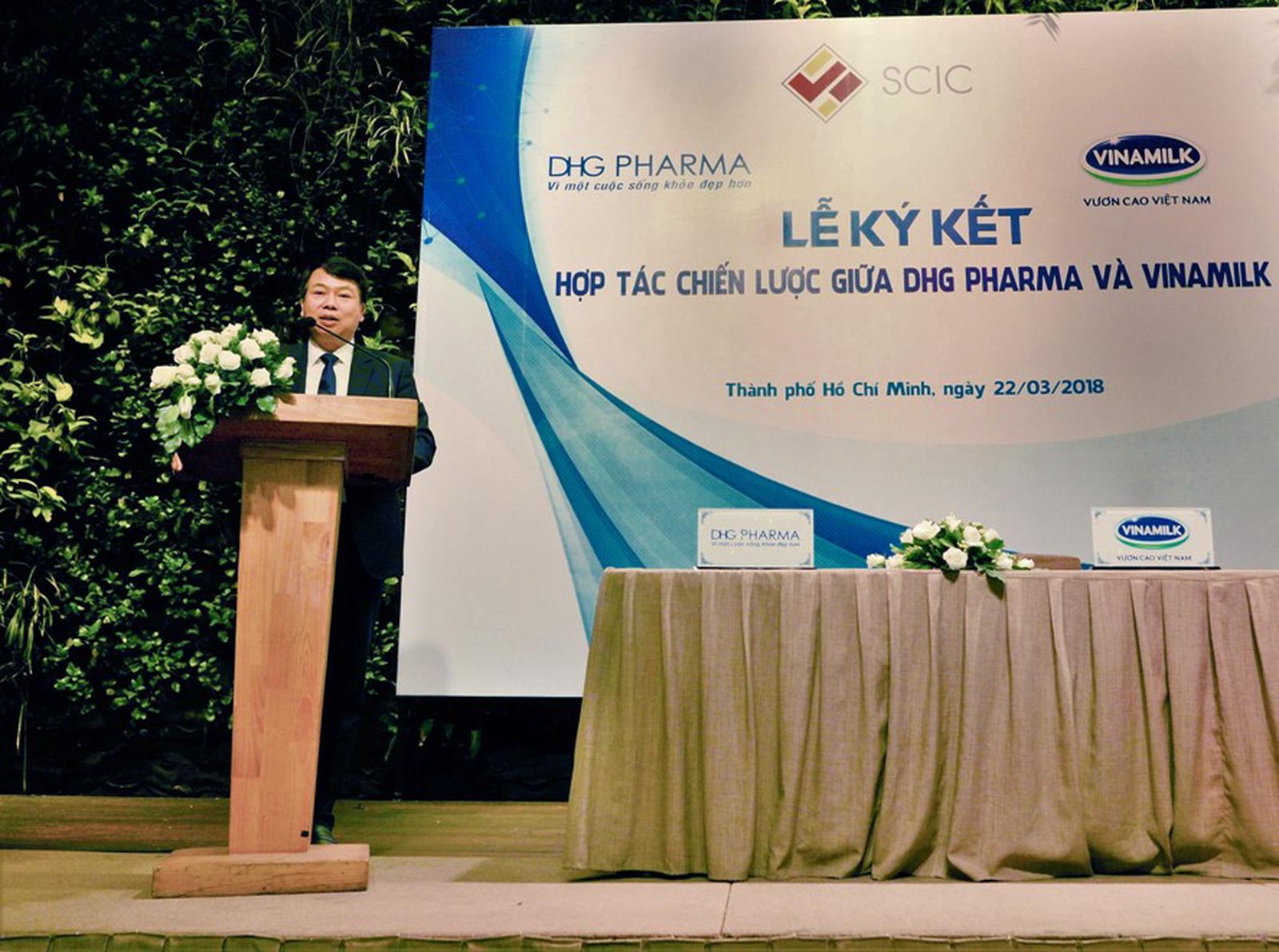 Tham dự có PGS. TS Nguyễn Thanh Phong, Cục trưởng Cục An toàn Thực phẩm (Bộ Y Tế); ông Nguyễn Đức Chi, Chủ tịch Hội đồng thành viên SCIC; ông Nguyễn Chí Thành, Phó Tổng Giám đốc phụ trách SCIC kiêm Chủ tịch Hội đồng quản trị DHG Pharma.