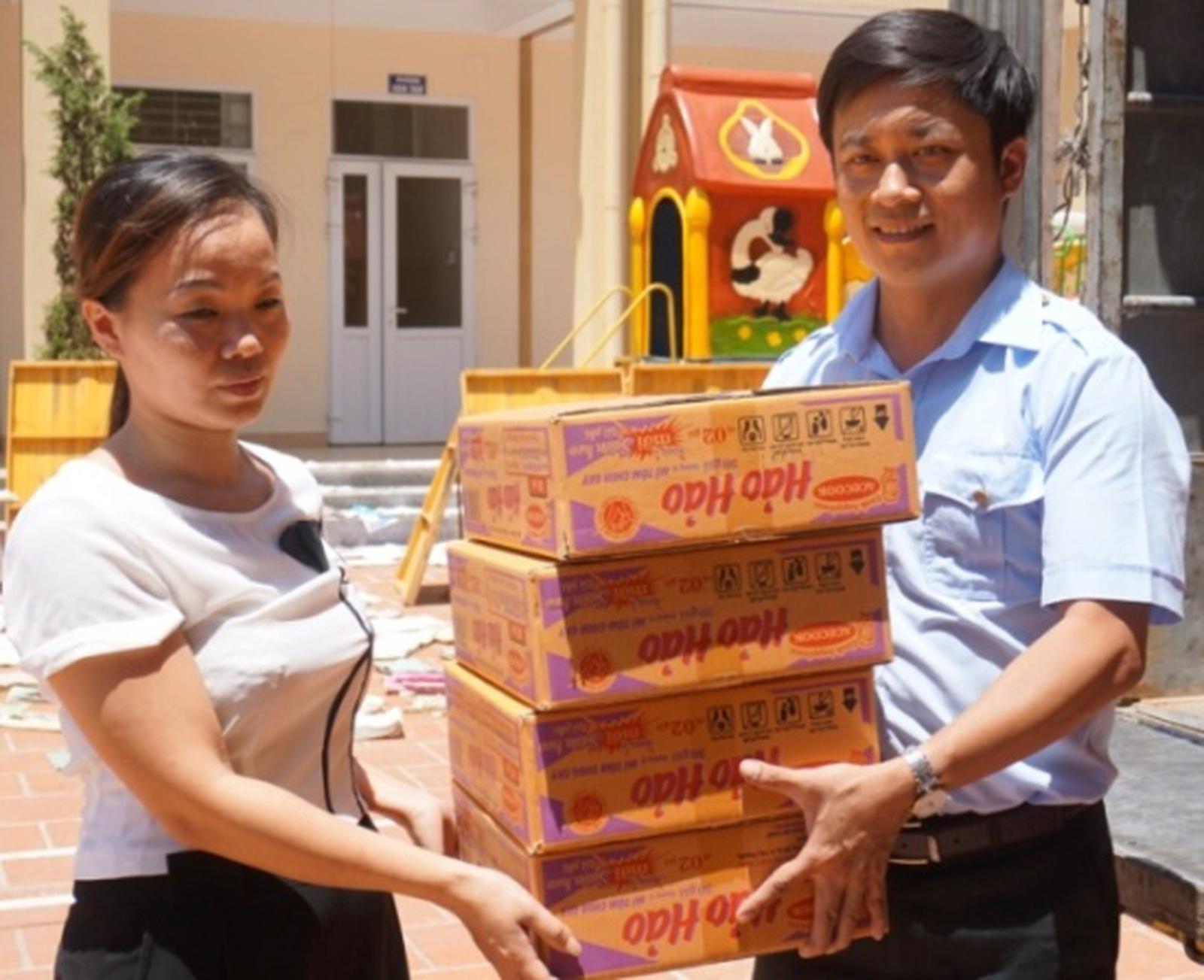 Chủ tịch Công đoàn Báo Thanh tra Lê Trần Nguyên Huy trao quà cho nhà trường