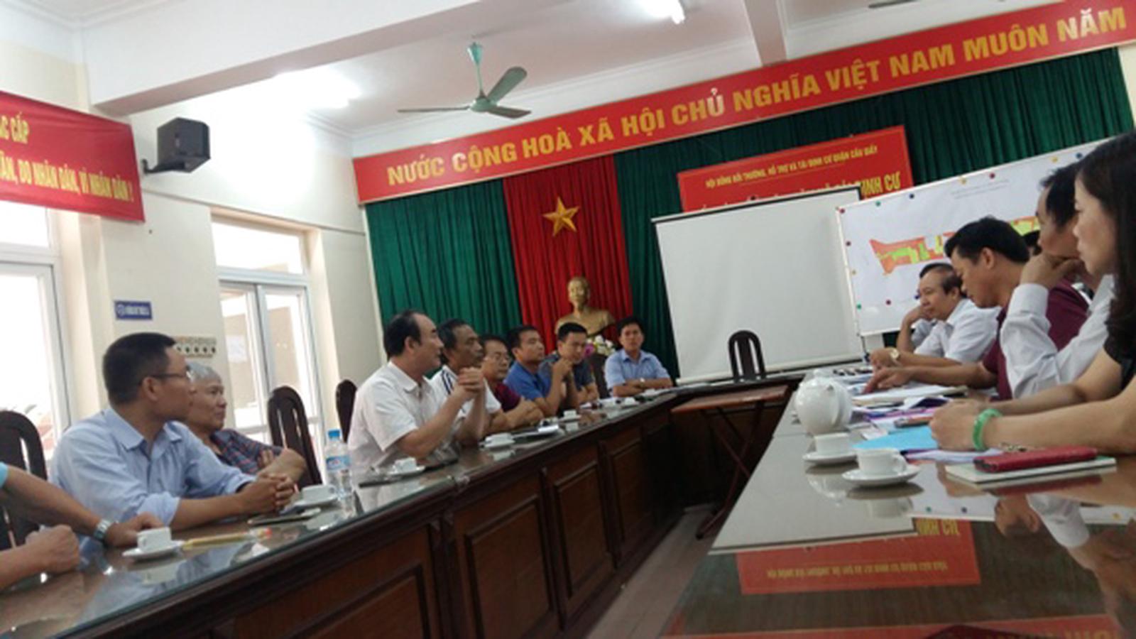 Tại buổi làm việc đột xuất với lãnh đạo quận Cầu Giấy, BQT và cư dân N08B đã bác bỏ những lỹ lẽ biện minh cho sự chây ì, không bàn giao tài sản, thanh lý hợp đồng khi đã hết hạn của đại diện Cty Thanh Bình. Ảnh: QĐ