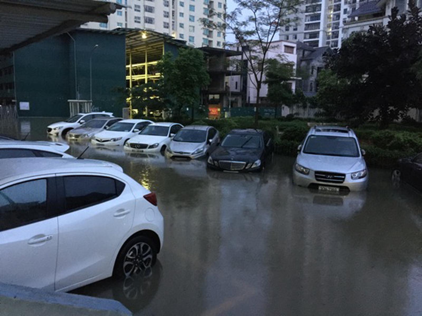 Dàn xe ngập chìm trong biển trước sự vô cảm, tắc trách của lực lượng bảo vệ nhà N08B. Ảnh: CTV