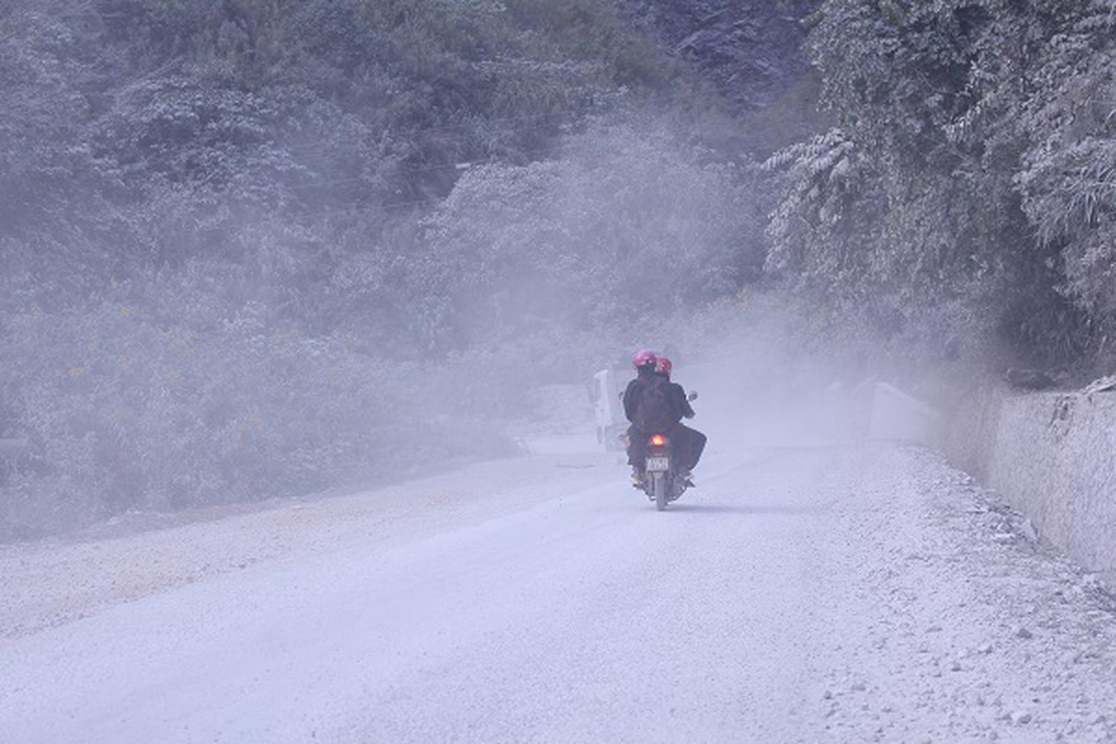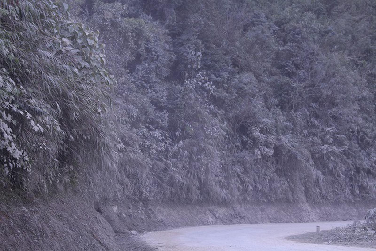 Quốc lộ 279 đoạn km104 mặt đường được phủ lớp bột đá dày vài cm. Ảnh: TK