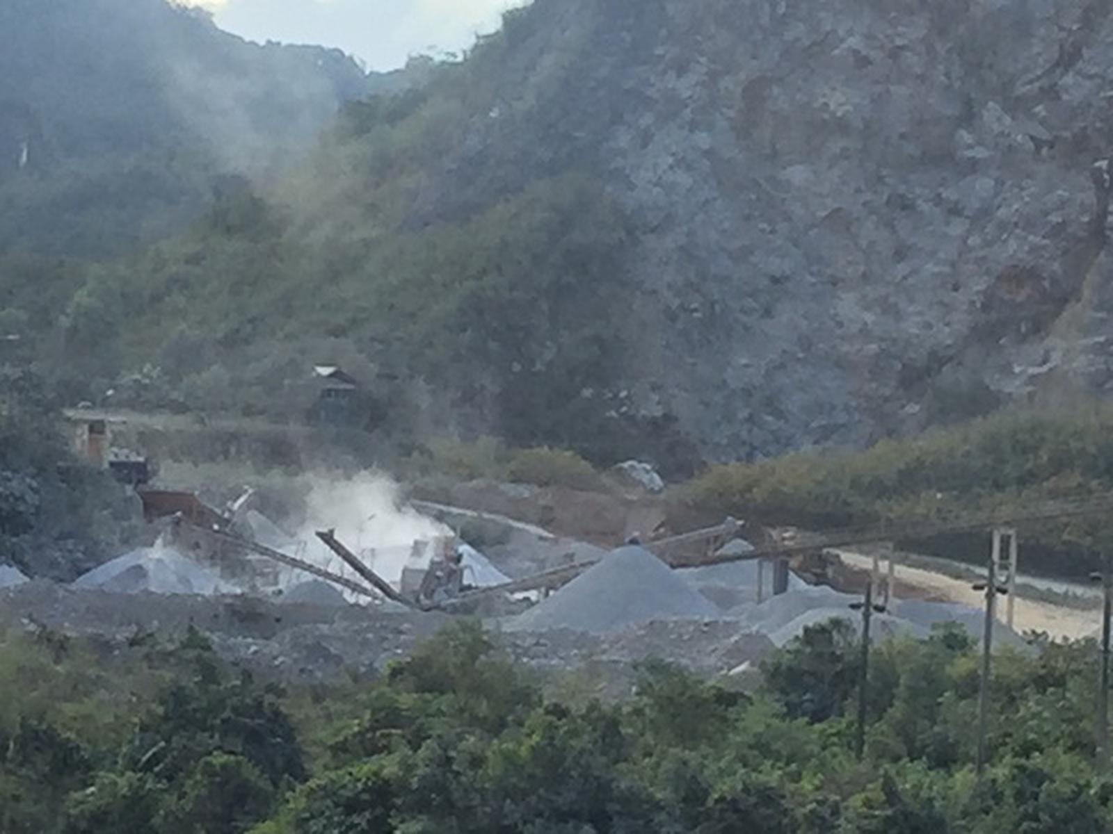 Tại khu vực mỏ đá Tây Trang (km 105), trước mắt chúng tôi là 3 mỏ đá nằm cách nhau không xa đang hoạt động hết công suất, tiếng máy nghiền, máy xúc, máy sàng đá… vang cả một vùng rộng lớn.