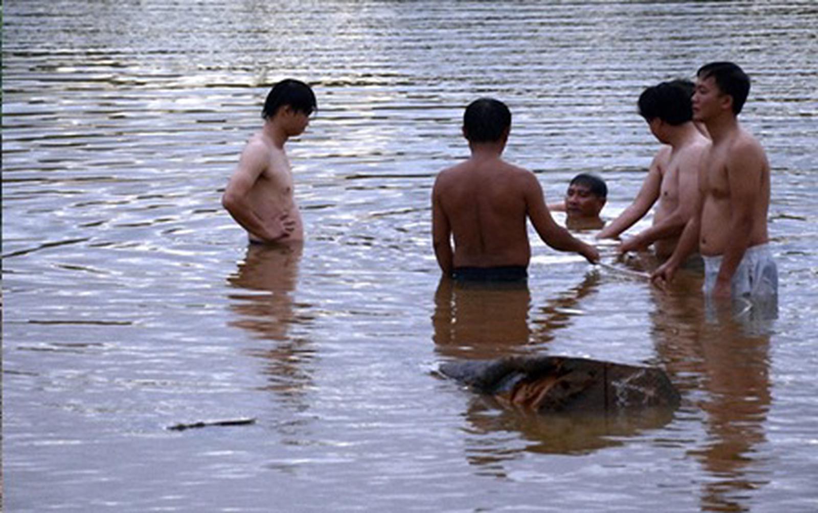 Qua kiểm tra, phát hiện hàng chục lóng gỗ đang nằm sâu dưới nước.