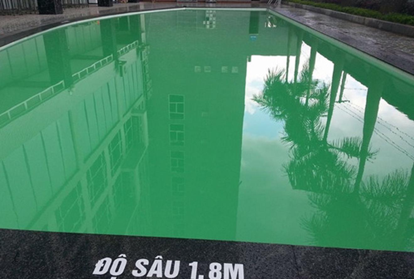 Theo quan sát của chúng tôi, bể bơi có diện tích hơn 100m² nằm ngay bên hông khách sạn Vinh Plaza, có ba độ sâu 1,2m, 1,7m và 1,8m. Nước trong bể bơi khá đục, không quan sát được đáy bể.