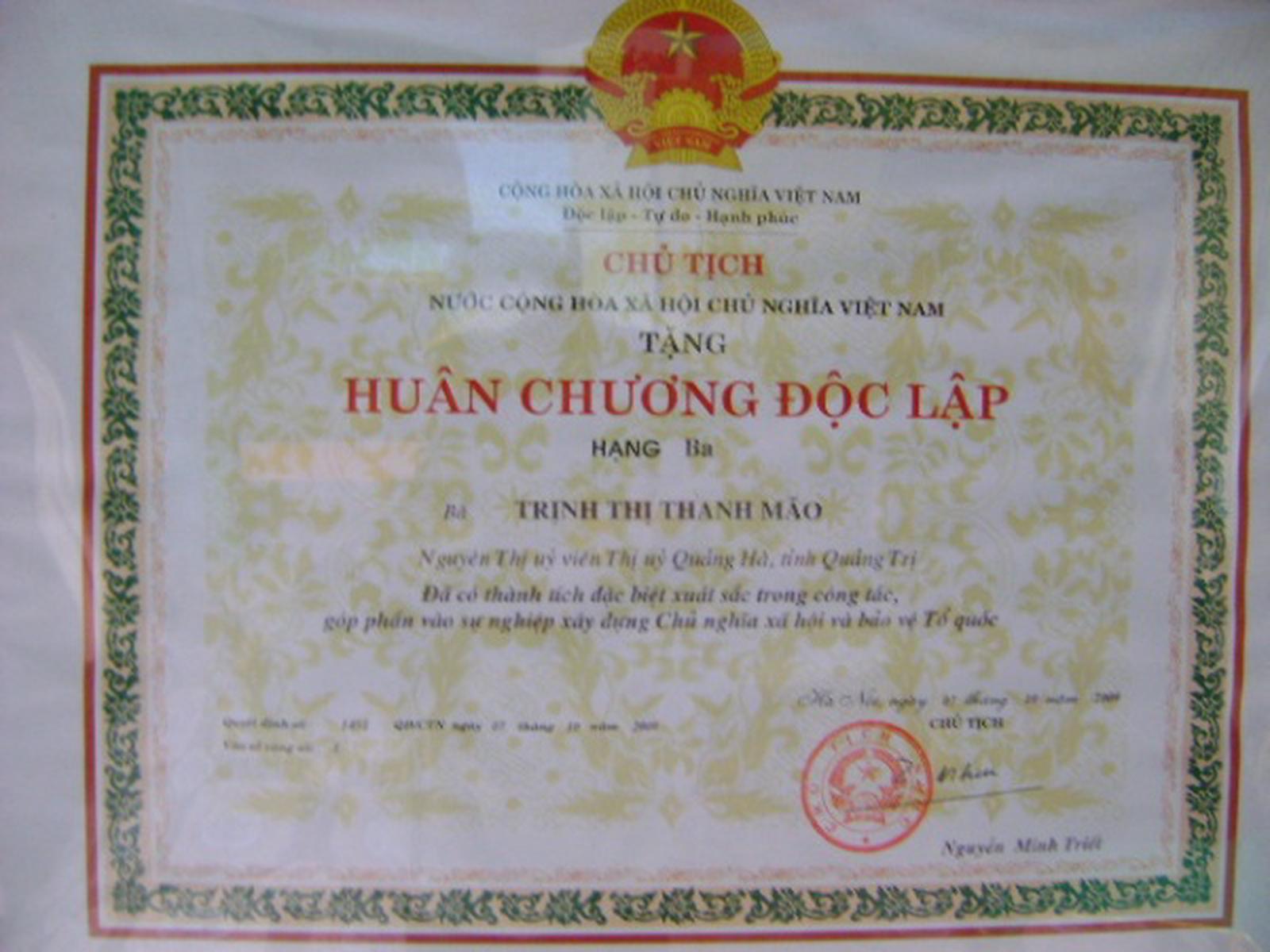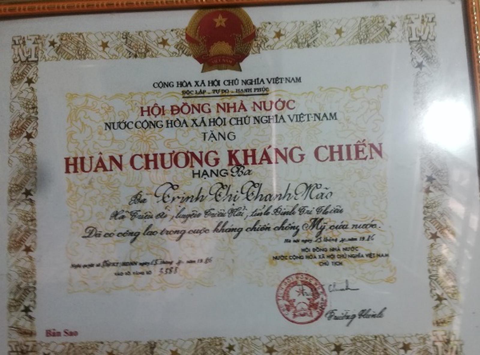 Trước những cống hiến lớn lao, bà Trịnh Thị Thanh Mão được Đảng, Nhà nước trao tặng Huân chương Độc lập, Huân chương Kháng chiến cùng nhiều danh hiệu cao quý khác. Ảnh: Nguyên Dũng
