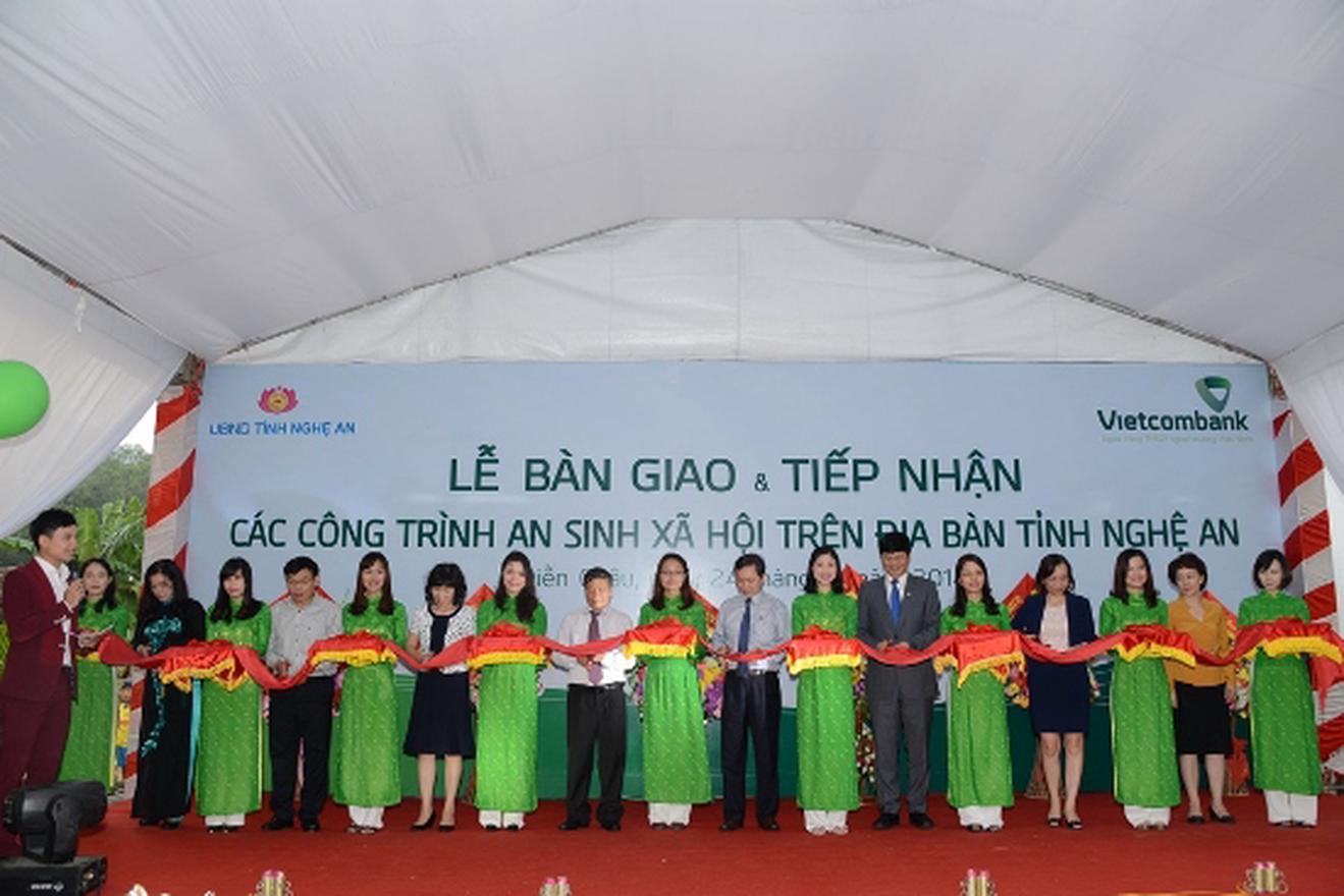 Tại đây, Vietcombank đã trao 2,3 tỷ đồng kinh phí xây dựng và trang thiết bị khám chữa bệnh, đồng thời bàn giao các công trình an sinh xã hội thuộc lĩnh vực giáo dục cho 2 huyện nghèo của tỉnh Nghệ An là Diễn Châu và Tương Dương gồm: Phòng học đa chức năng trị giá 2,45 tỷ đồng (thuộc huyện Diễn Châu); Trường Mầm non xã Tam Thái trị giá 3,38 tỷ đồng; Trường Tiểu học Tam Thái, trị giá1,19 tỷ đồng; Trường Tiểu học Yên Thắng I trị giá 3,49 tỷ đồng và Trường Tiểu học Tam Đình trị giá 940 triệu đồng (thuộc huyện Tương Dương).