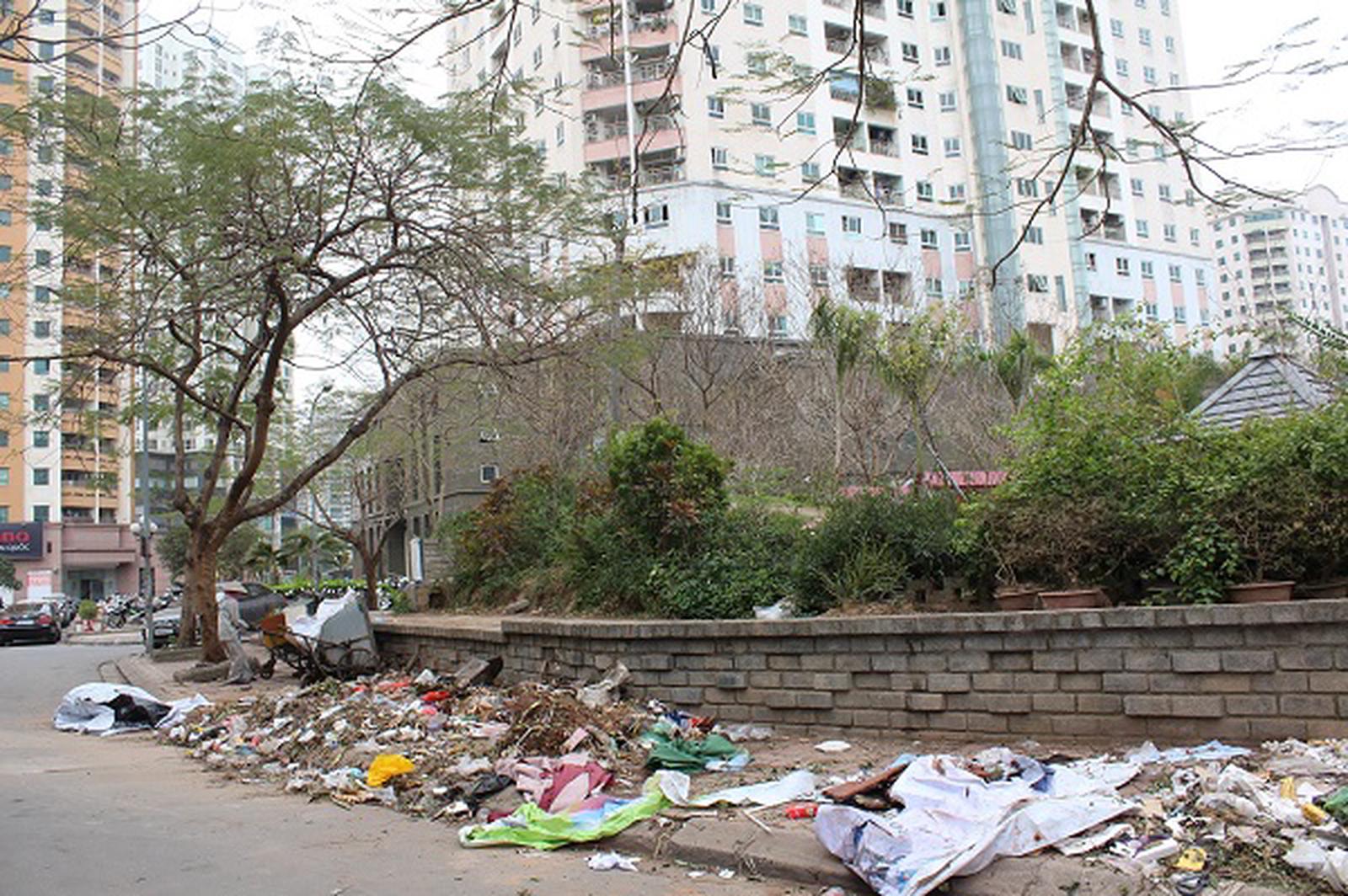 Ngay cả khu đô thị vào loại đồng bộ hàng đầu của Hà Nội như Trung Hòa - Nhân Chính, hè phố cũng bị chiếm dụng và ô nhiễm bởi rác sinh hoạt. Ảnh: Hữu Oanh