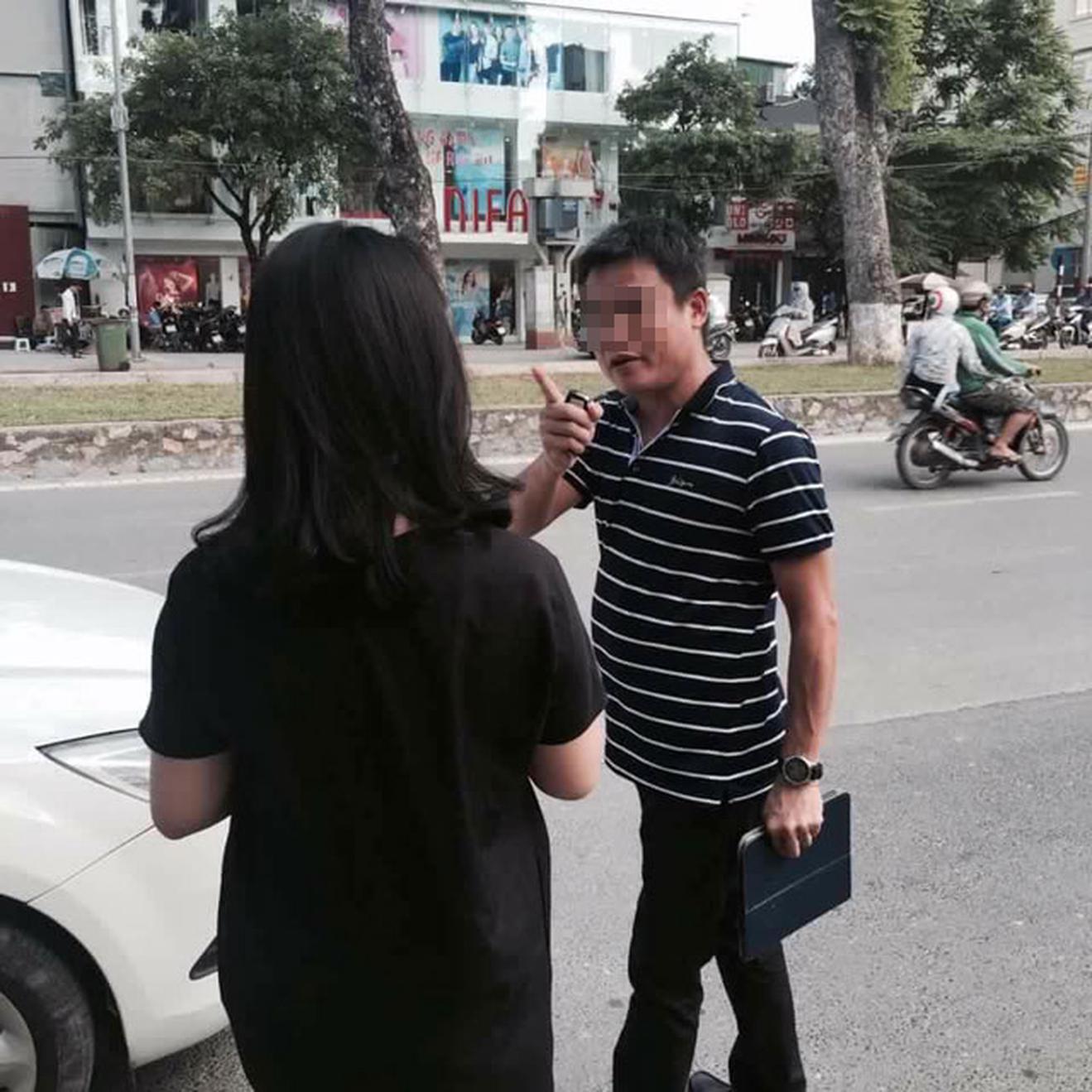 “30 phút sau anh áo kẻ trong nhóm 3 người quay ra nhảy lên xe định chạy tiếp thì mình ra nói chuyện và thái độ kênh kiệu, chỉ trỏ vào mặt… mình và chị mình đứng chặn đầu xe thì anh này định phóng xe chẹt vào… Rất may lúc đó cán bộ công an phường ra ngăn chặn chứ nếu không không biết chuyện gì sẽ xảy ra…”.