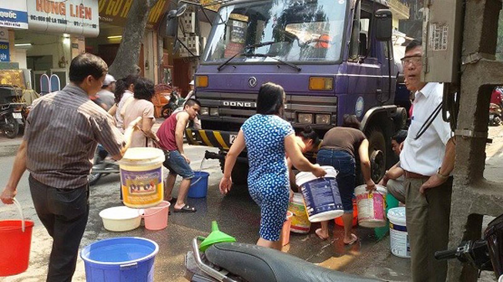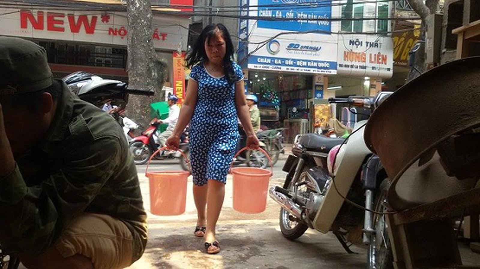 Một số hộ đi xin nước của hàng xóm khu vực chưa bị mất, một số không xin được thì phải đi mua nước với giá 10 nghìn/xô. Có hộ bỏ ra cả trăm nghìn mua nước cho đợt mất nước vừa qua.