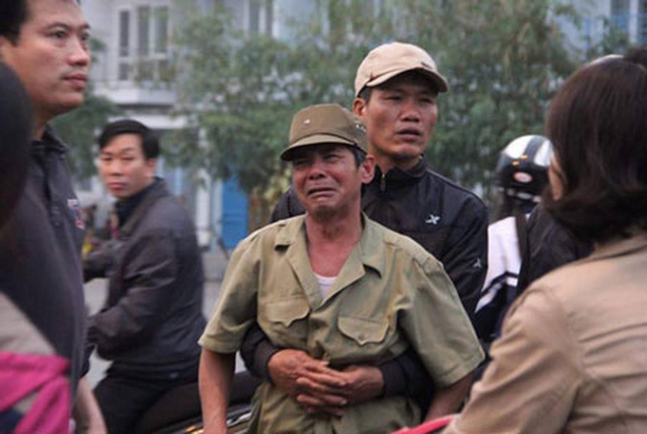 Người đàn ông khóc ngất tại hiện trường khi nhìn thấy thi thể con dâu và cháu nội của mình - (Ảnh: Facebook Đức Thuận).