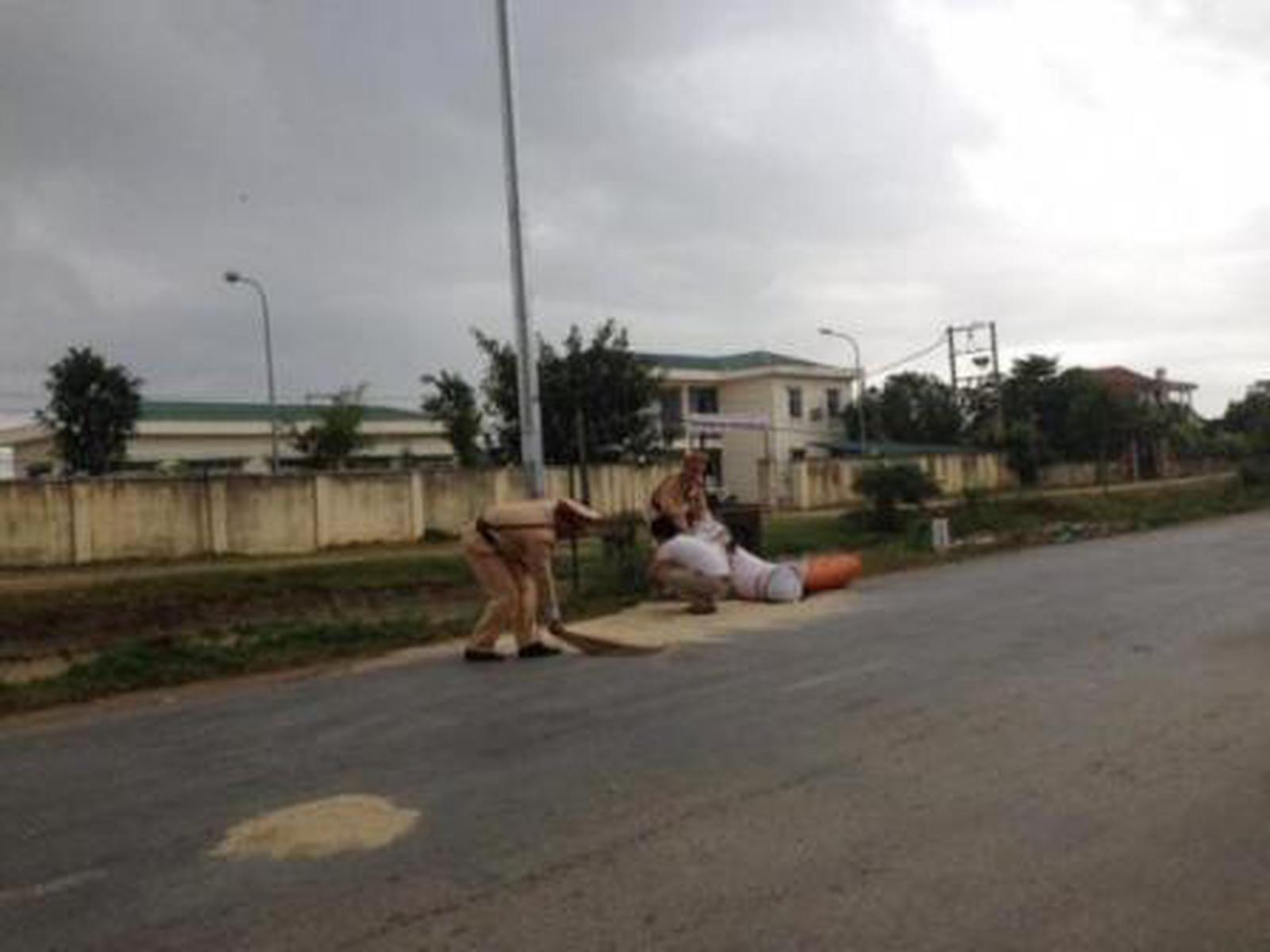 Hay, ngày 7/11, trên tuyến QL10 đoạn qua địa phận huyện Hoằng Hoá, Thanh Hoá, nhiều người đi đường chứng kiến Đại uý Lê Hồng Khanh và Tống Văn An thuộc Phòng CSGT Thanh Hóa, khi thấy một người đàn ông điều khiển xe máy chở 3 bì gạo, do tránh một người đi đường nên chiếc xe máy đã ngã xuống đường khiến toàn bộ số gạo đổ tung tóe trên đường, các anh nhanh chóng chạy vào nhà dân mượn chổi quét, thu gom số gạo lại rồi bốc cho vào bì, giúp người dân đưa lên xe máy cùng lúc cơn mưa vừa ập tới.