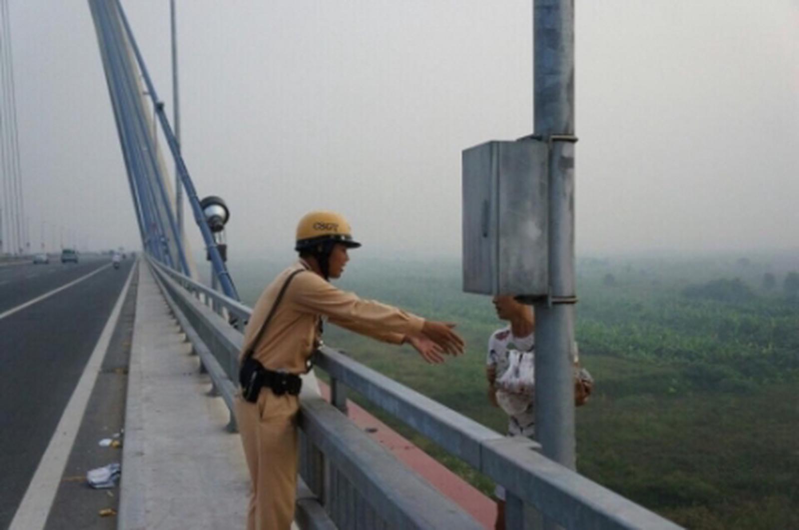Thượng uý Nguyễn Tuấn Cường - Đội phó Đội CSGT số 2 đã trực tiếp chỉ đạo Thượng sỹ Nguyễn Cao Bằng đang làm nhiệm vụ gần đó đến chỗ nam thanh niên kể trên. Đến giữa cầu, Thượng sỹ Bằng thấy một nam thanh niên đang ôm tảng đá đứng khóc. Người chiến sỹ CSGT tiến lại gần, khuyên nhủ, động viên rồi túm kéo thanh niên vào trong an toàn.