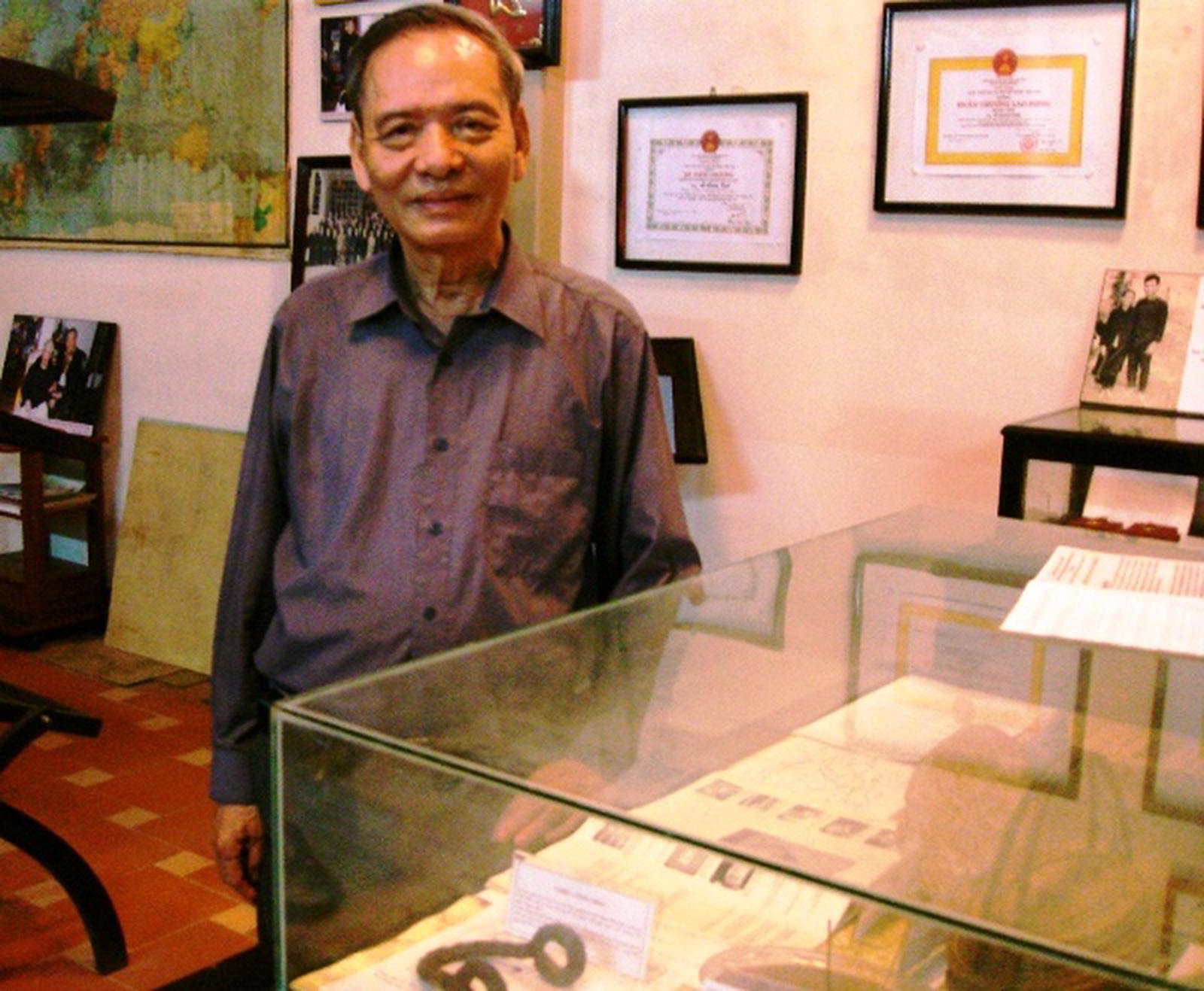 Ông Lê Quang Vịnh bên phòng trưng bày bảo tàng của mình. Ảnh: ND