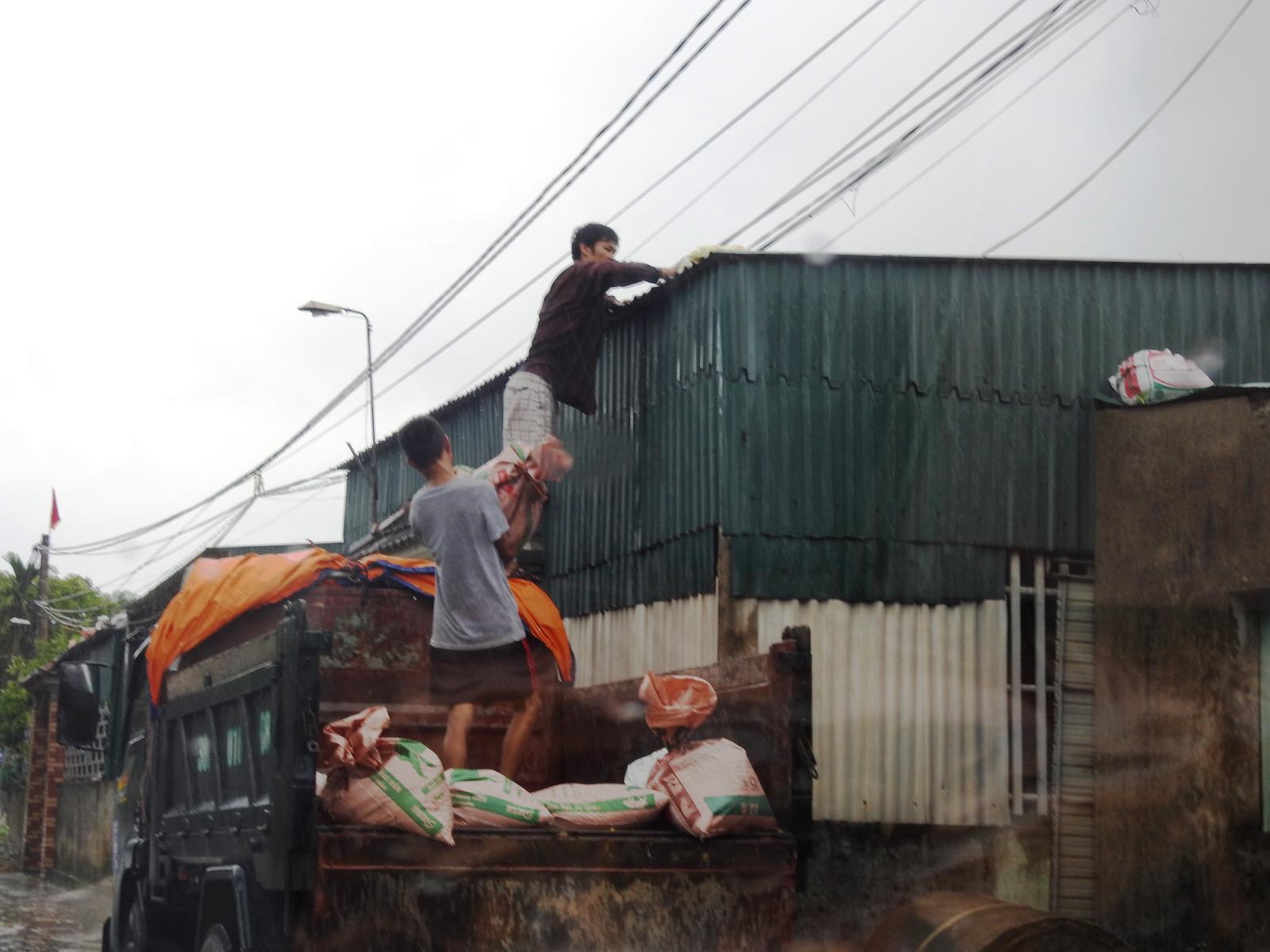 Hối hả gặt lúa "chạy" siêu bão. Chằng néo nhà của tránh bão. Tin, ảnh: Hải Yến