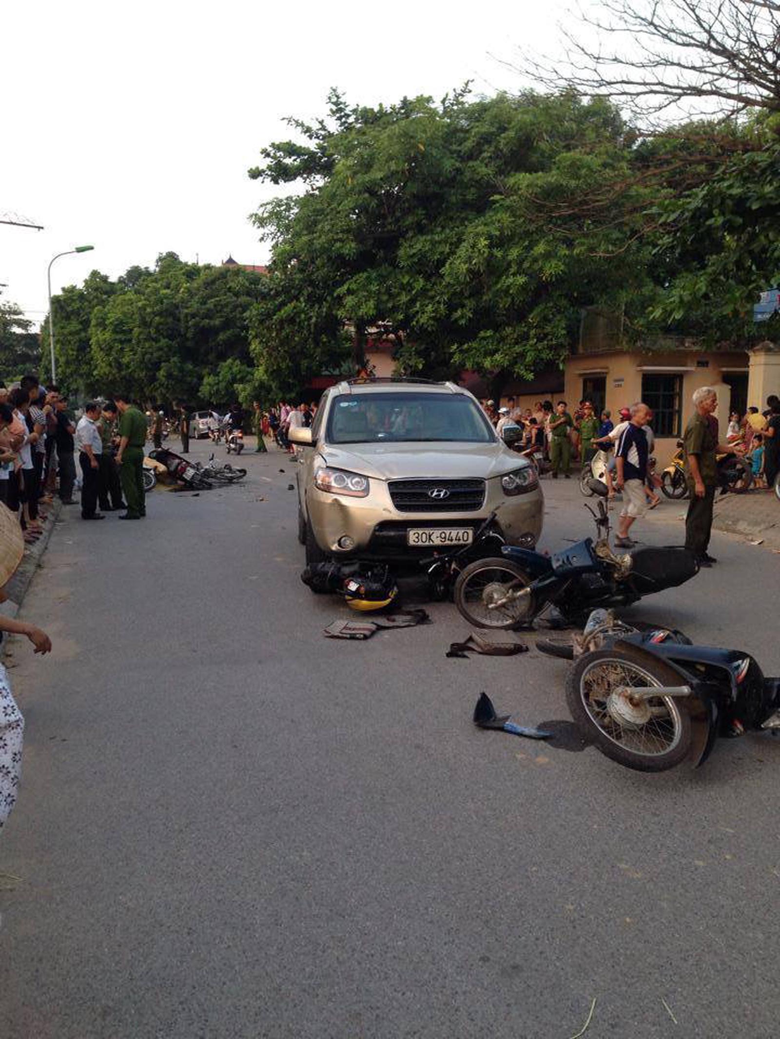 Nhiều người dân chứng kiến vụ tai nạn cho biết, chiếc xe ô tô 7 chỗ hiệu Huyndai Santafe mang biển kiểm soát 30K - 9440 lưu thông trên đường Cổ Loa với tốc độ khá nhanh. Gặp lúc trường học tan tầm và những công sở như UBND xã Cổ Loa đông người ra vào nên đã đâm vào mấy chiếc xe máy đi phía trước.