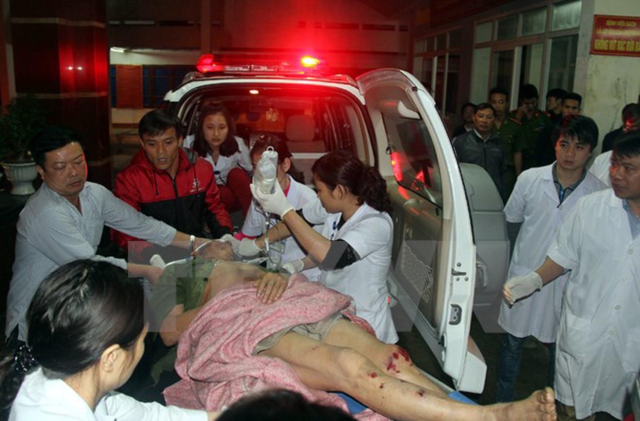 Công tác cấp cứu được tiến hành khẩn trương để cứu chữa cho các nạn nhân. Ảnh: Công Tường/TTXVN