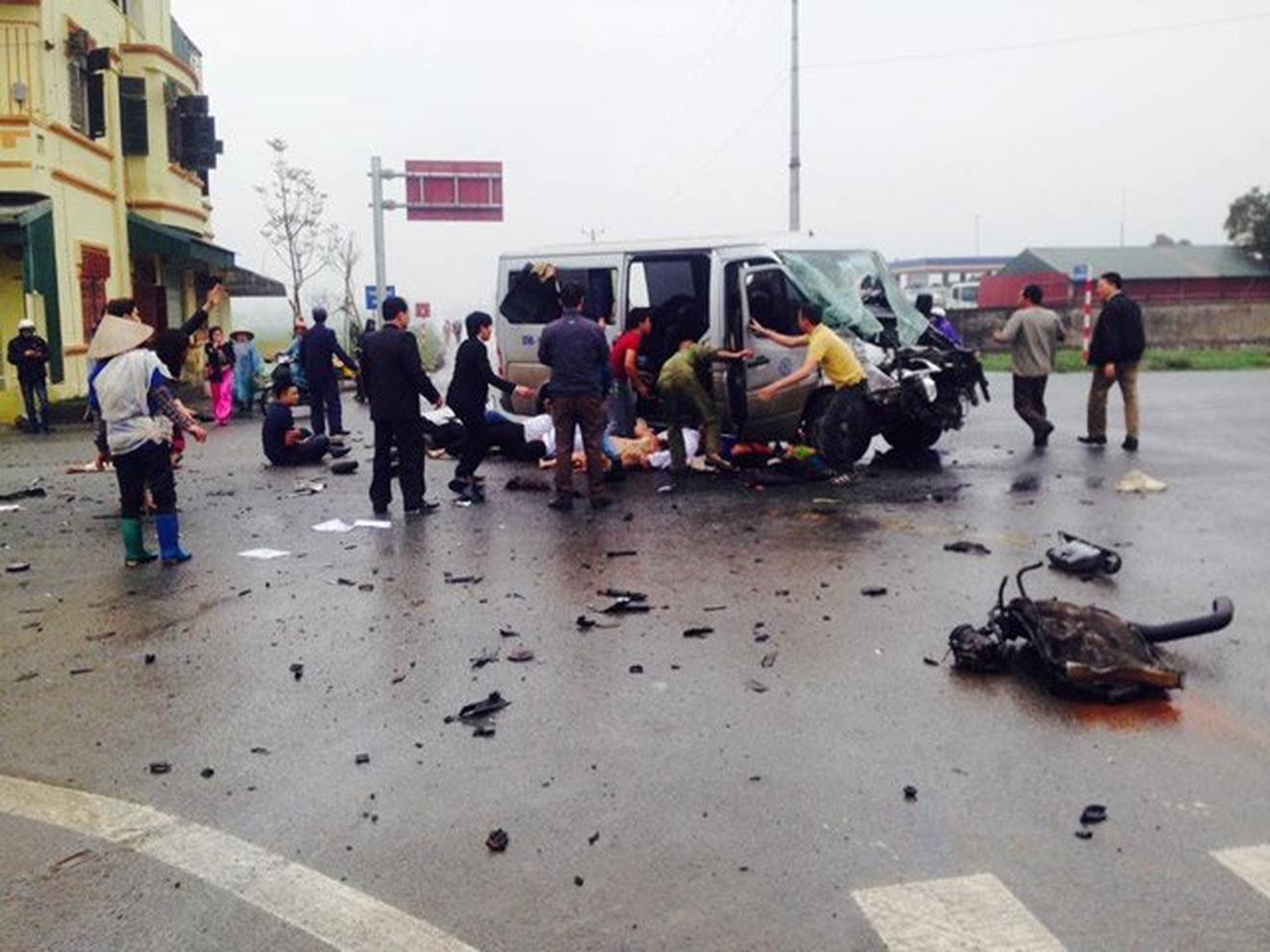 Sau cú va chạm với xe tải, 3 người chết, nhiều người bị thương phải nhập viện cấp cứu (ảnh: Lại Tiến Đạt)