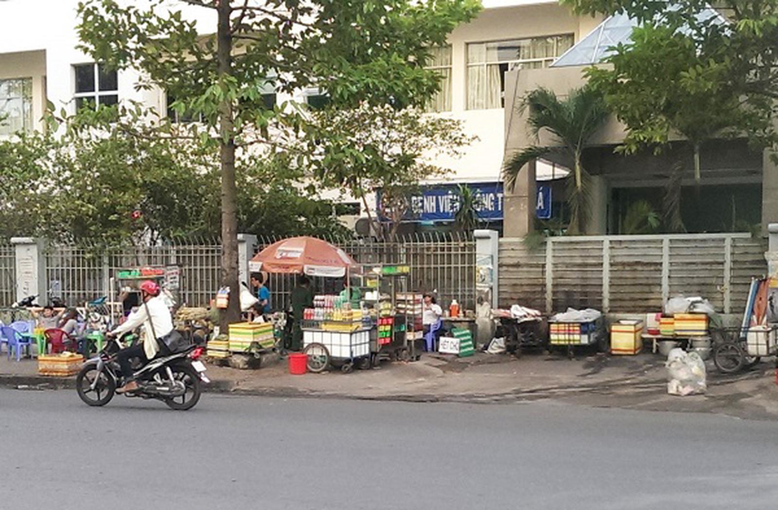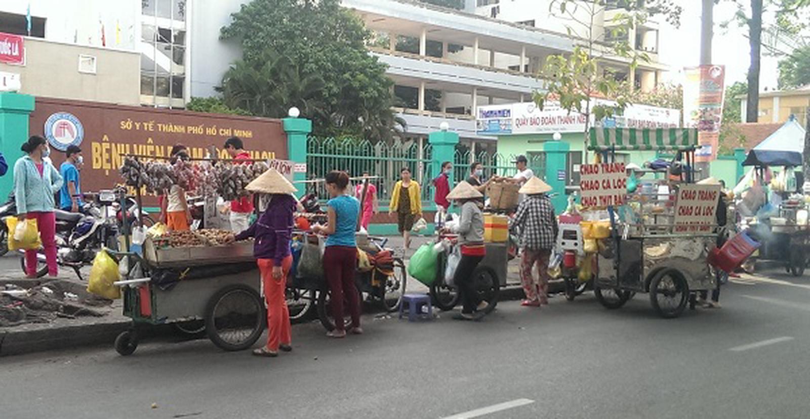 Đặc biệt, tại các bệnh viện trên địa bàn phường 12 (quận 5) như: Phạm Ngọc Thạch, Hùng Vương, Chợ Rẫy, tình trạng này diễn ra rất phổ biến. Theo quan sát, ngày nào cũng có hàng chục chiếc xe đẩy tay bán các loại nước ngọt, trái cây, đồ ăn… án ngữ ngay trước cổng, gây khó khăn cho các phương tiện tham gia giao thông.