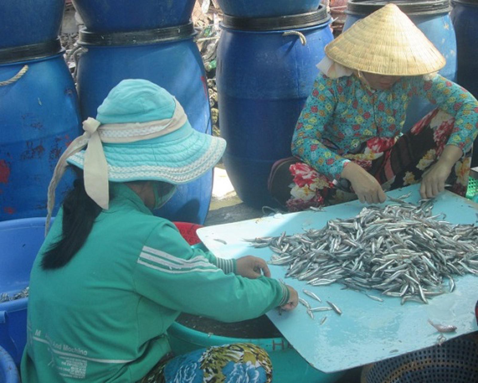 Cá cơm được thương lái thu mua với giá thấp. Ảnh: Xuân Hướng