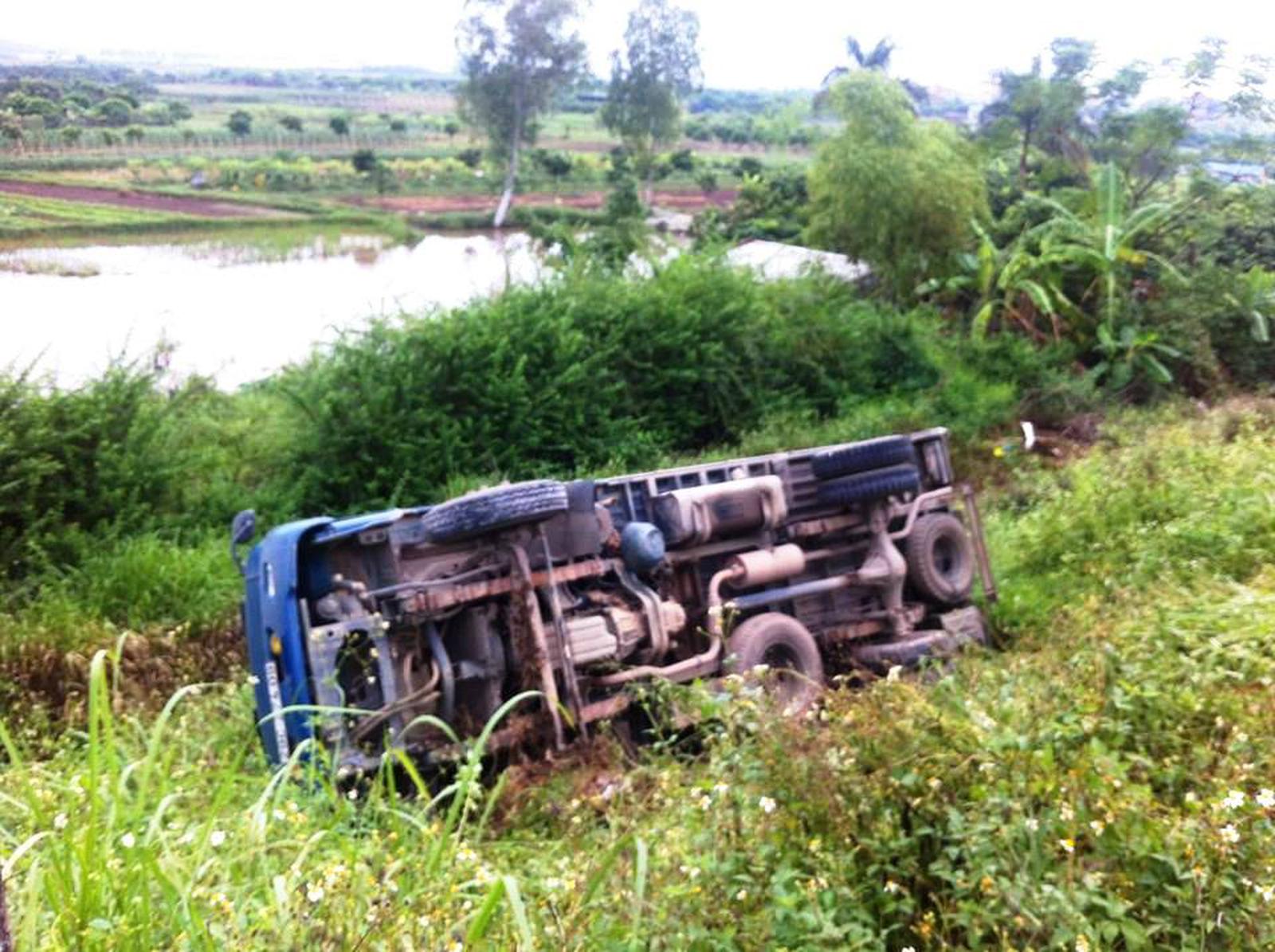 (Thanh tra) - Chiếc xe tải loại nhỏ đang lưu thông trên đường đê với tốc độ khá nhanh khi gặp phải ổ gà đã không kịp tránh và mất lái bị lật xuống dệ đê gây tai nạn.