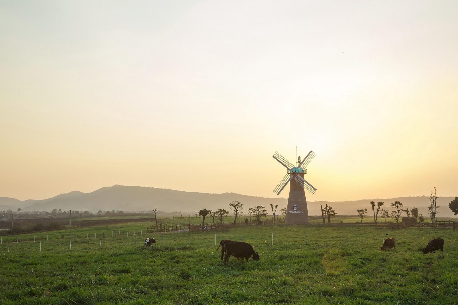 Những chiếc cối xay gió của trang trại tạo nên một khung cảnh đậm chất điện ảnh