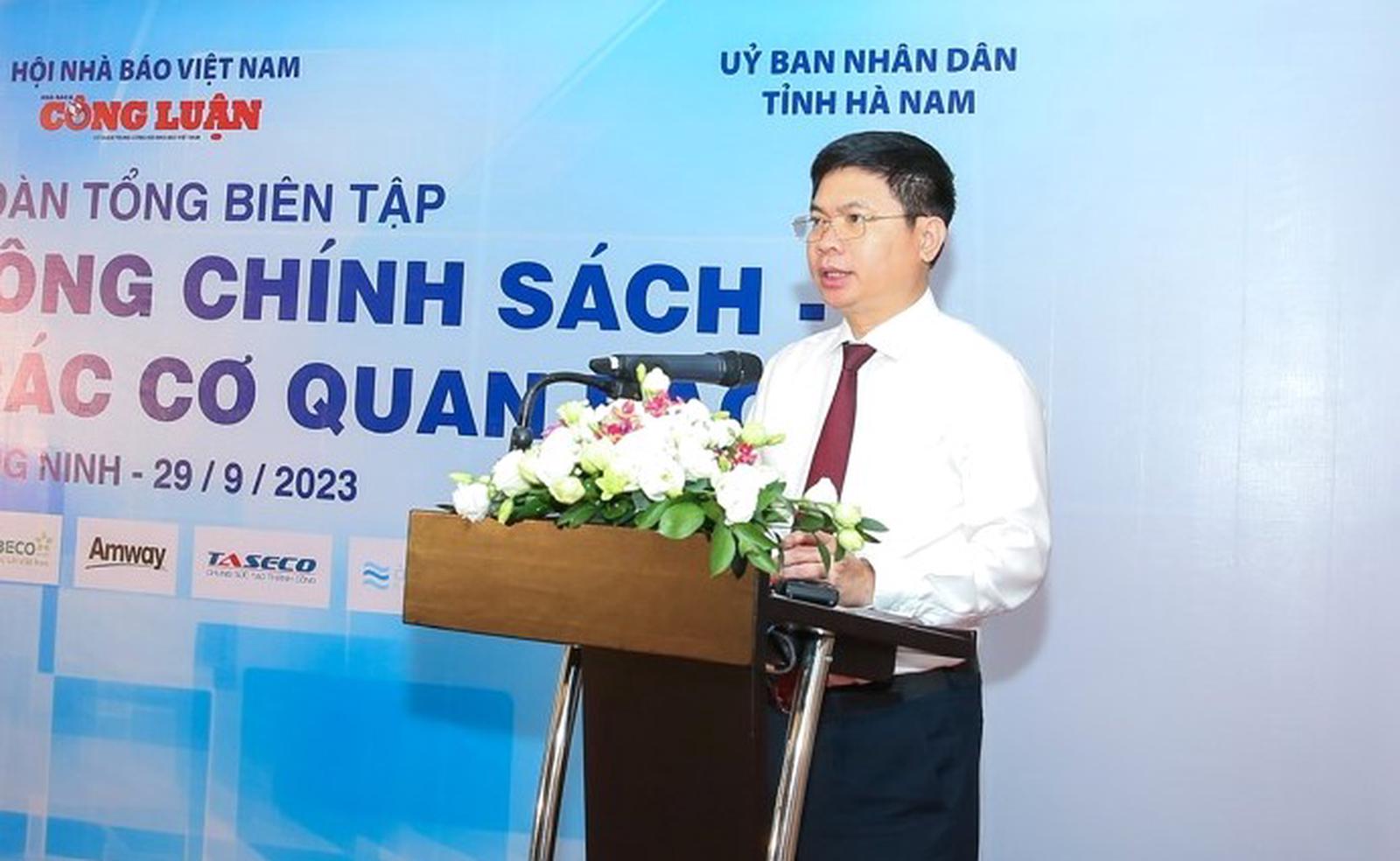 Chủ tịch UBND tỉnh Hà Nam Trương Quốc Huy chia sẻ, tỉnh Hà Nam luôn chú trọng đến trong công tác thực hiện truyền thông chính sách. Ảnh: CTV