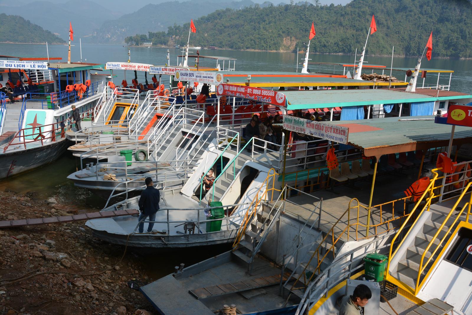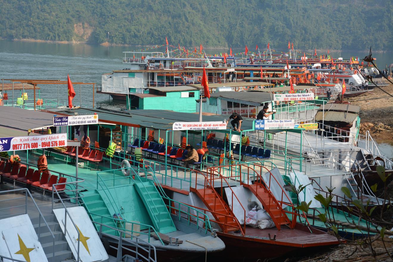 Bến Thung Nai có hơn 100 tàu khách, nhưng từ ngày 1/2/2023 (tức 11 tháng Giêng) đến nay chỉ có 17 tàu chở khách đủ điều kiện hoạt động, còn lại khoảng 100 tàu phải neo bờ, không được xuất bến.