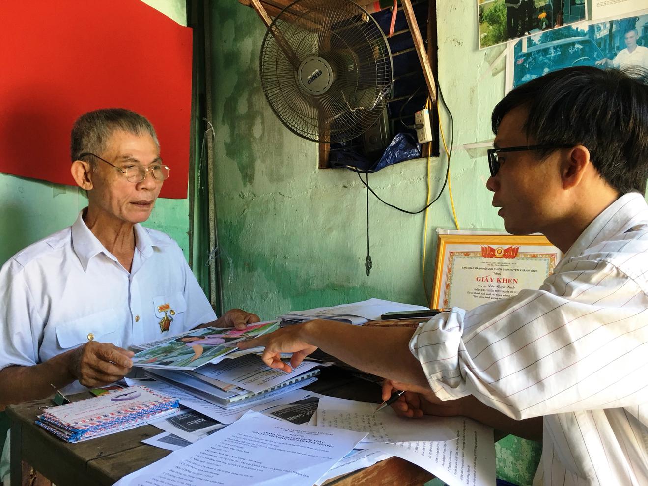 Cựu chiến binh Đào Thiện Sính trao đổi về những ngày tìm kiếm hài cốt đồng đội