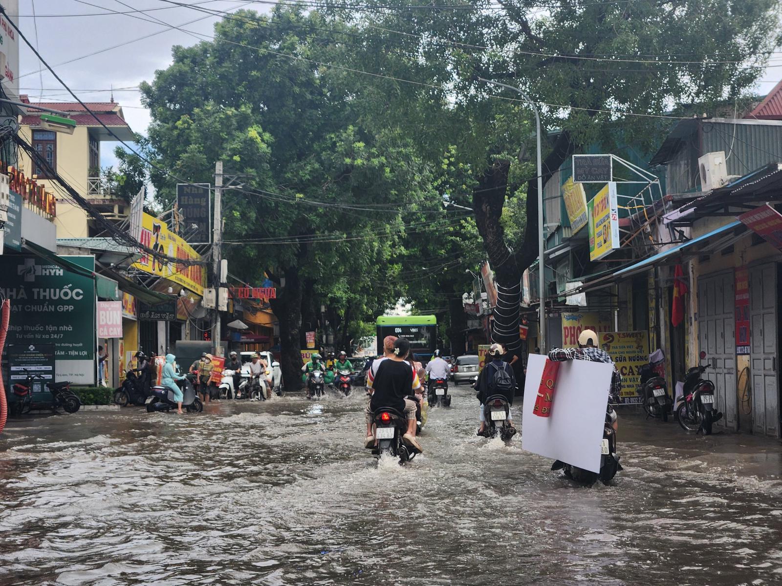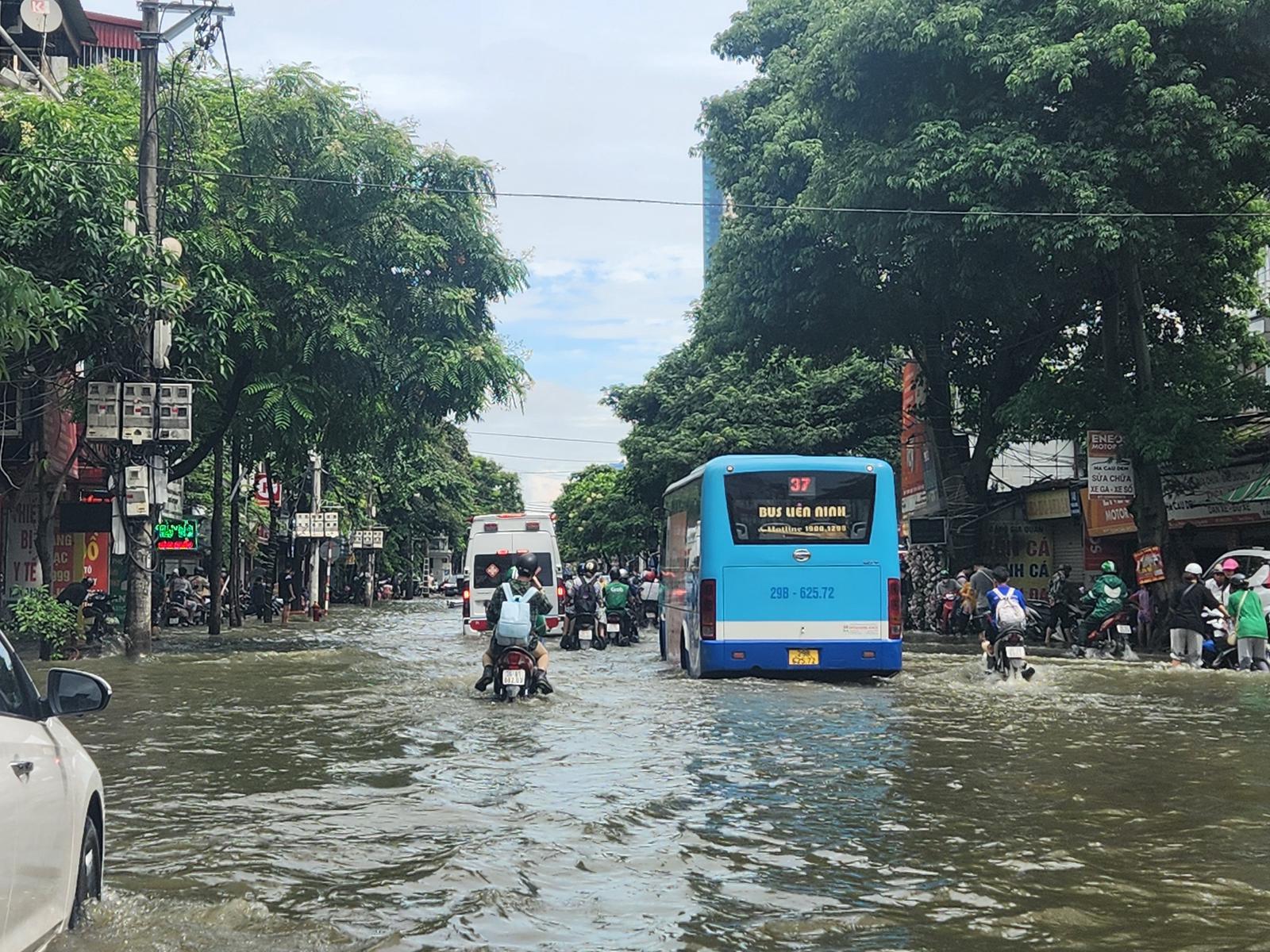 Do mực nước tại các sông, hồ dâng cao, như hồ Trúc Bạch 6,38m; hồ Tây (tại cửa xả Hồ Tây A) 6,11m; hồ Văn Quán 5,69m; sông Tô Lịch (tại đập Thanh Liệt) 5,58m... nên sáng nay, nhiều điểm trên địa bàn thành phố ngập sâu trong nước.