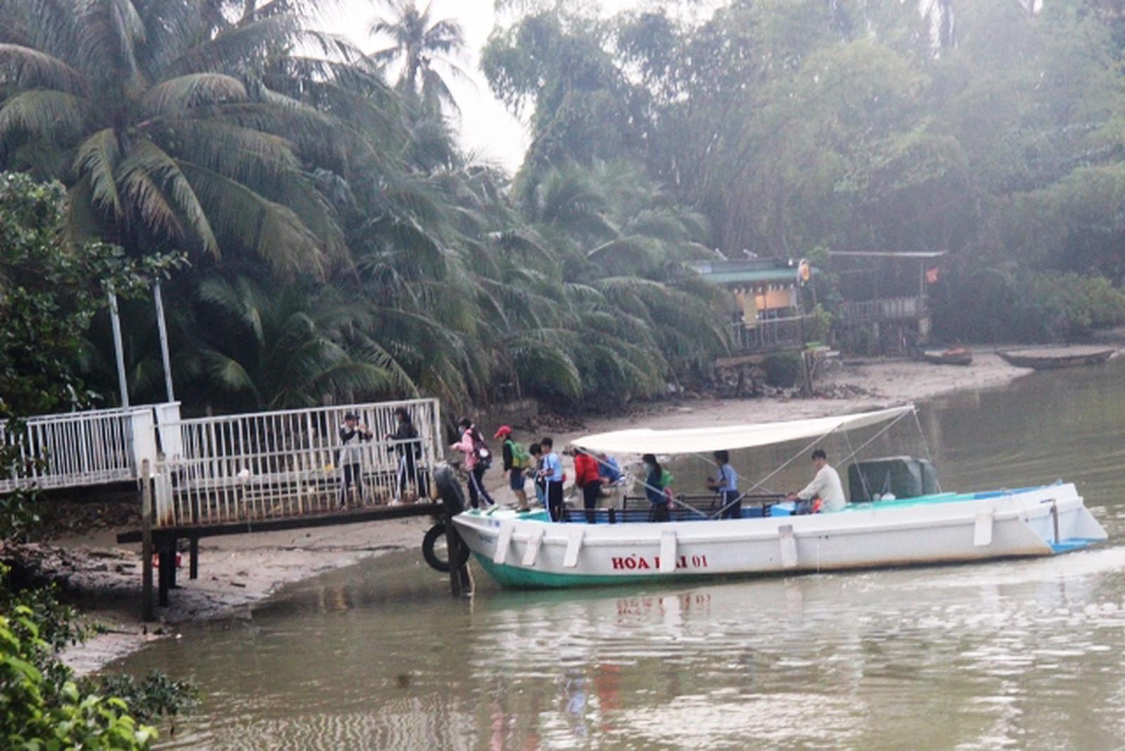 Cầu Phú Kiểng hư, học sinh phải thuê ca nô để qua sông đến trường. Ảnh: Thanh Hòa